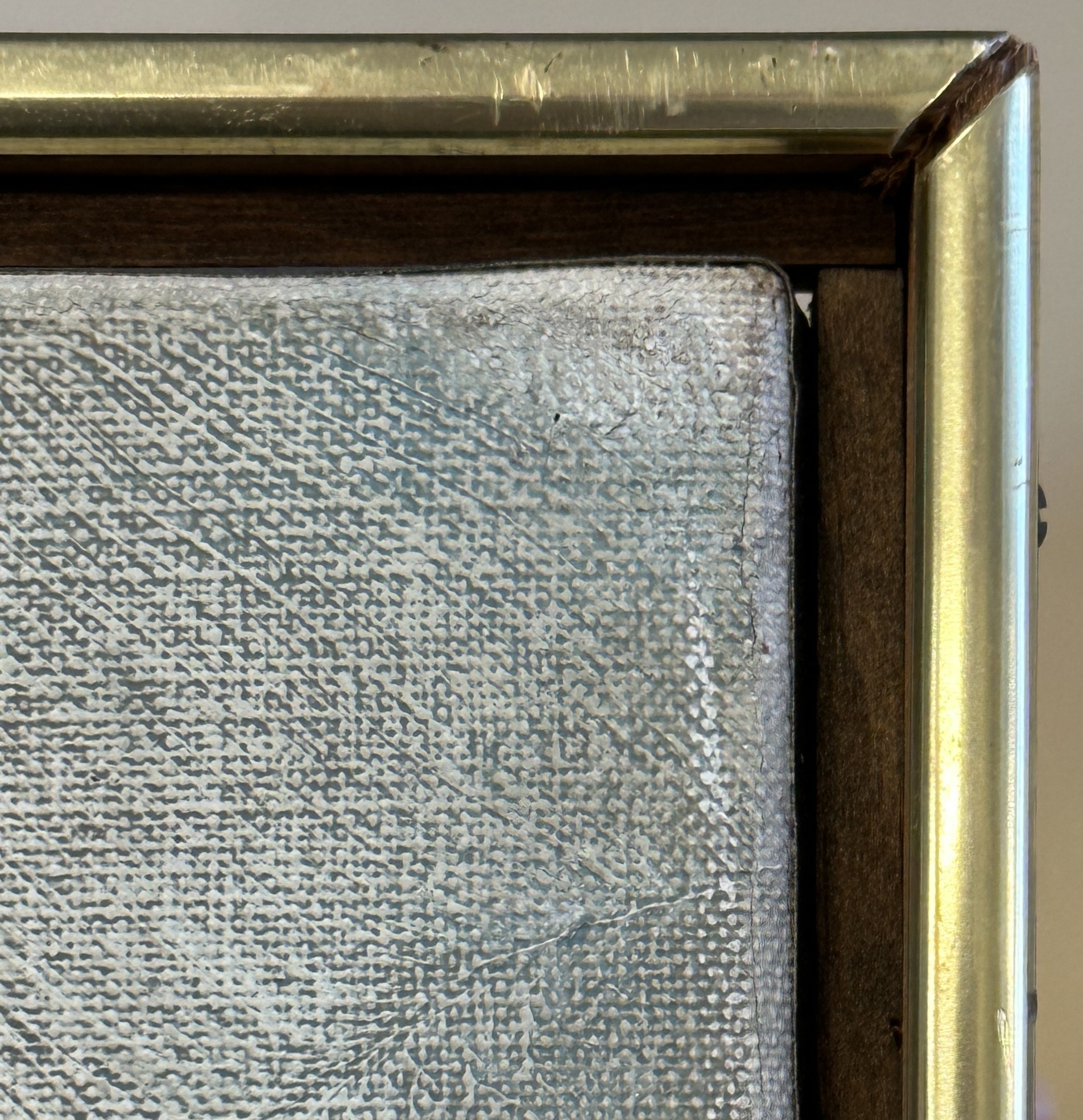 Custom framed in a box frame behind 99% UV-filtering conservation glass.