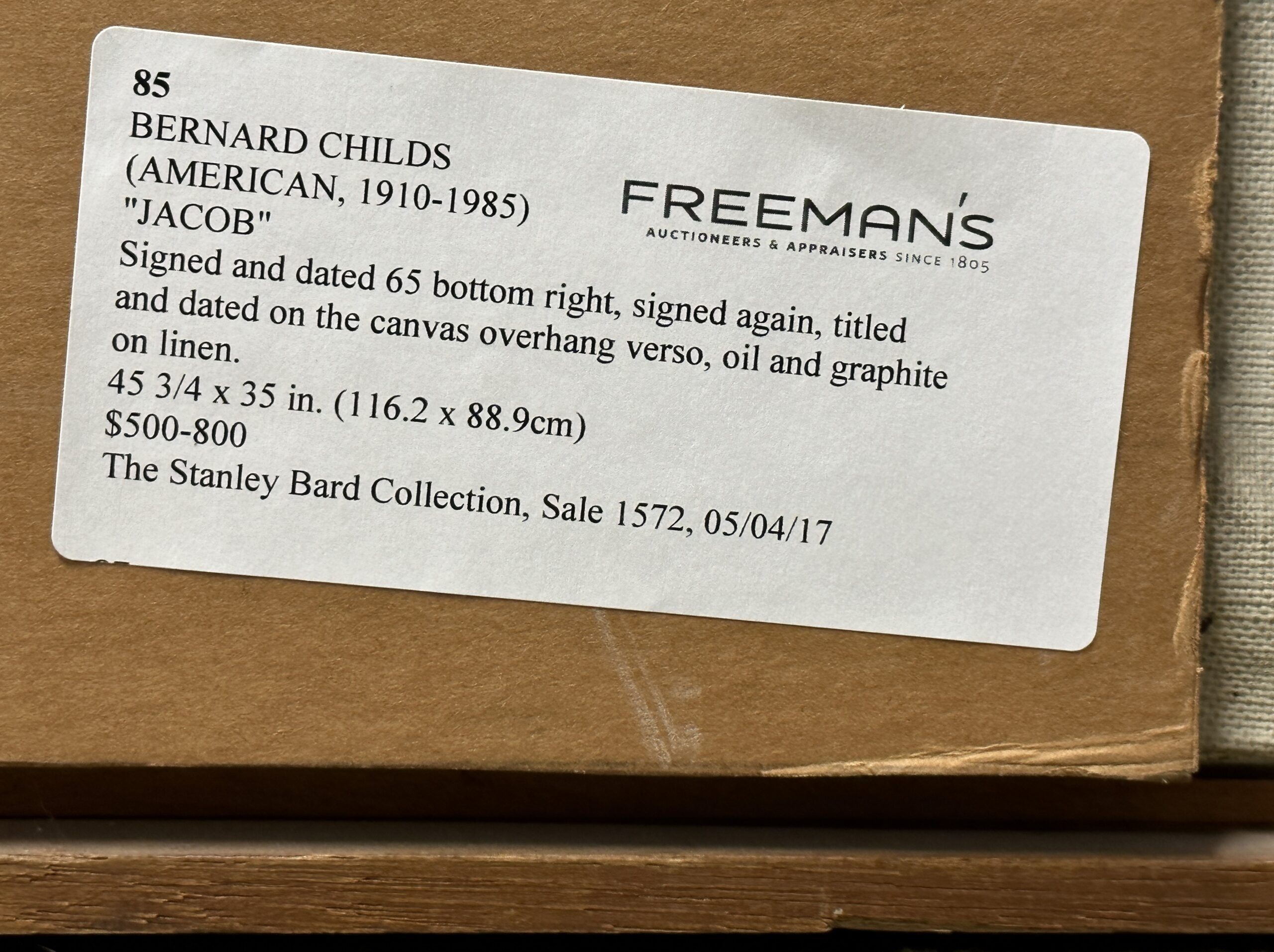 From the Artist to Stanley Bard, manager and co-owner of the legendary bohemian Chelsea Hotel, where Bernard Childs resided with his wife Judith who still lives there. Sold Freeman’s 2017 to a private collector, thence acquired by Washington Color Gallery.