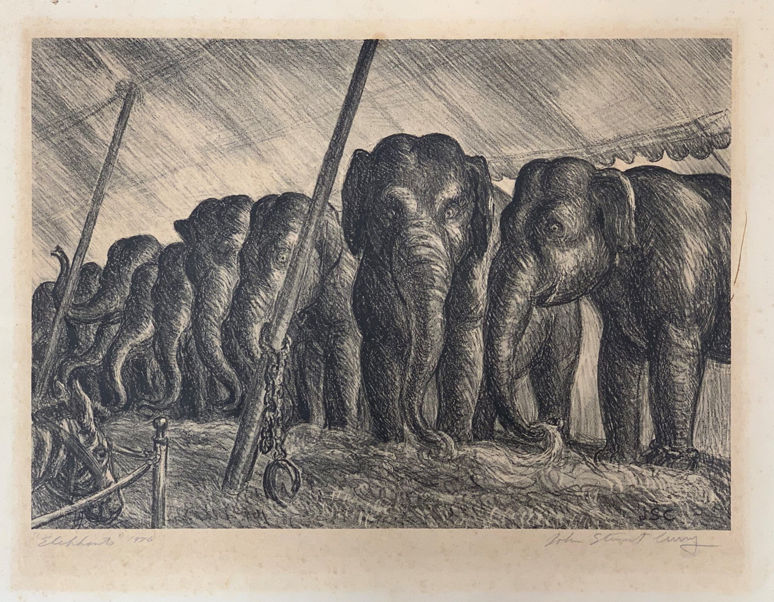 An example of this print is held by the Smithsonian American Art Museum.  Circus Elephants was printed in Life magazine in 1943.
