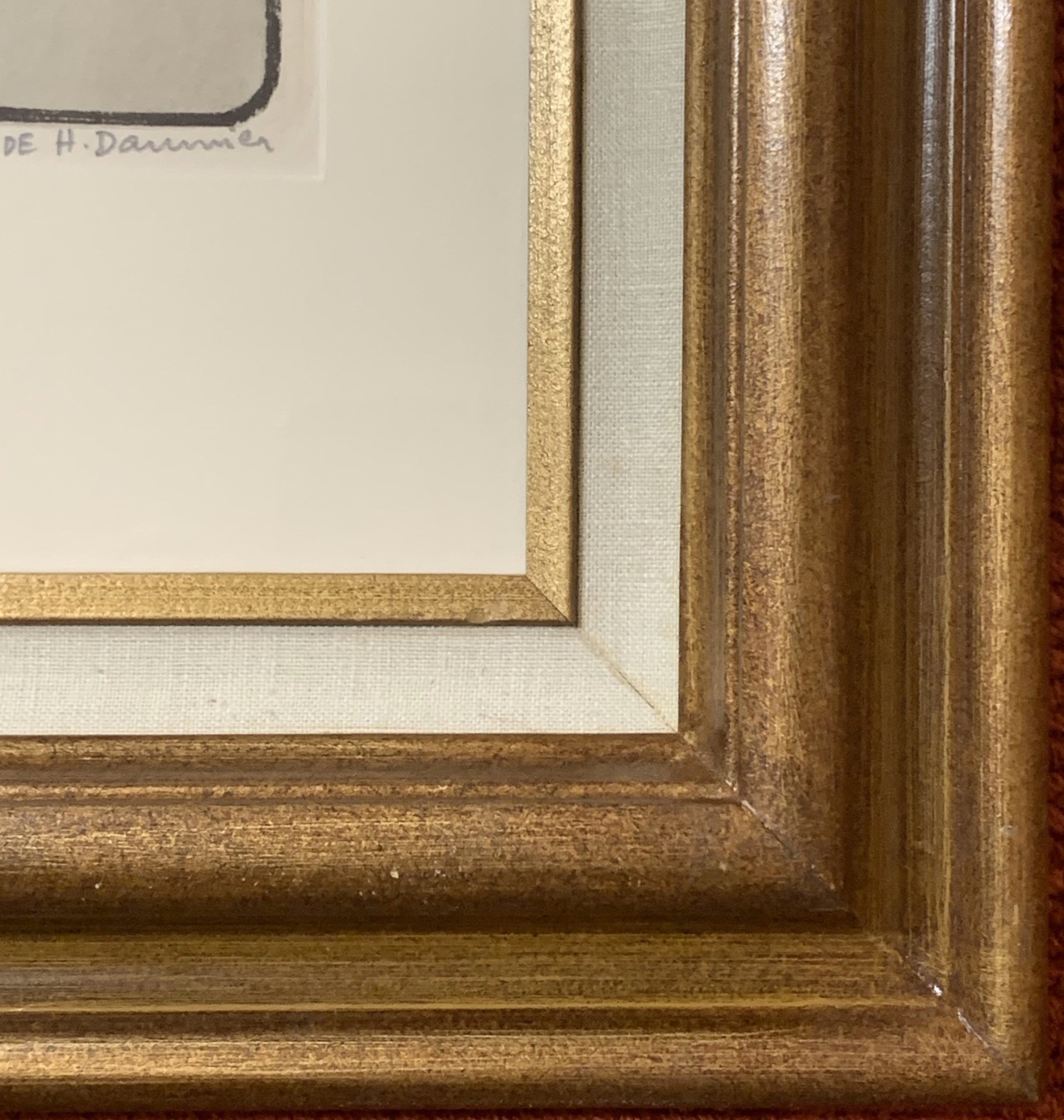This work is custom matted and framed in a vintage frame behind UV-Filter Plexiglass. All conservation materials.