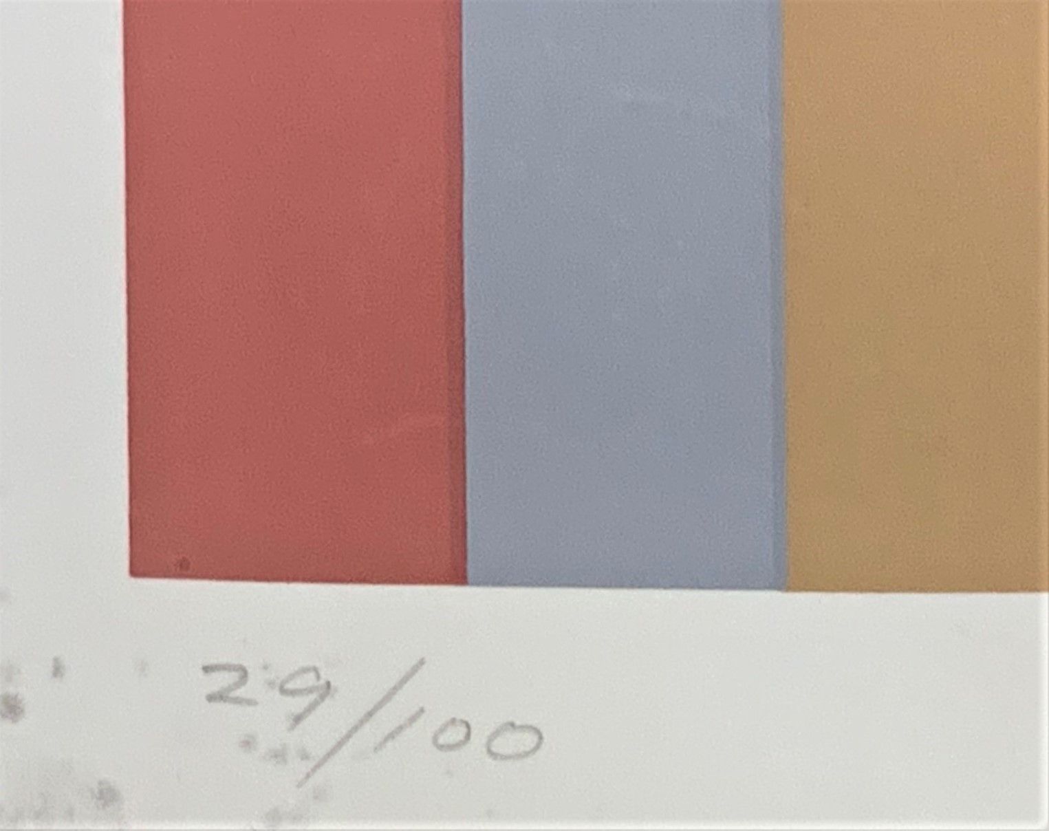 Serigraph (silkscreen) in multiple colors on white Lenox rag wove paper.