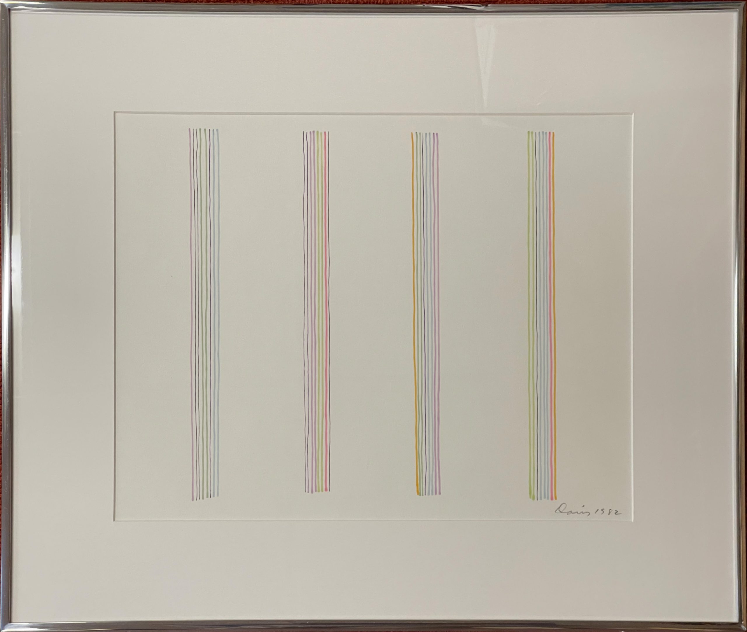 Framed in a custom-made Kulicke-style aluminum frame with welded seamless corners behind 99% UV-filtering art glass using all conservation materials.