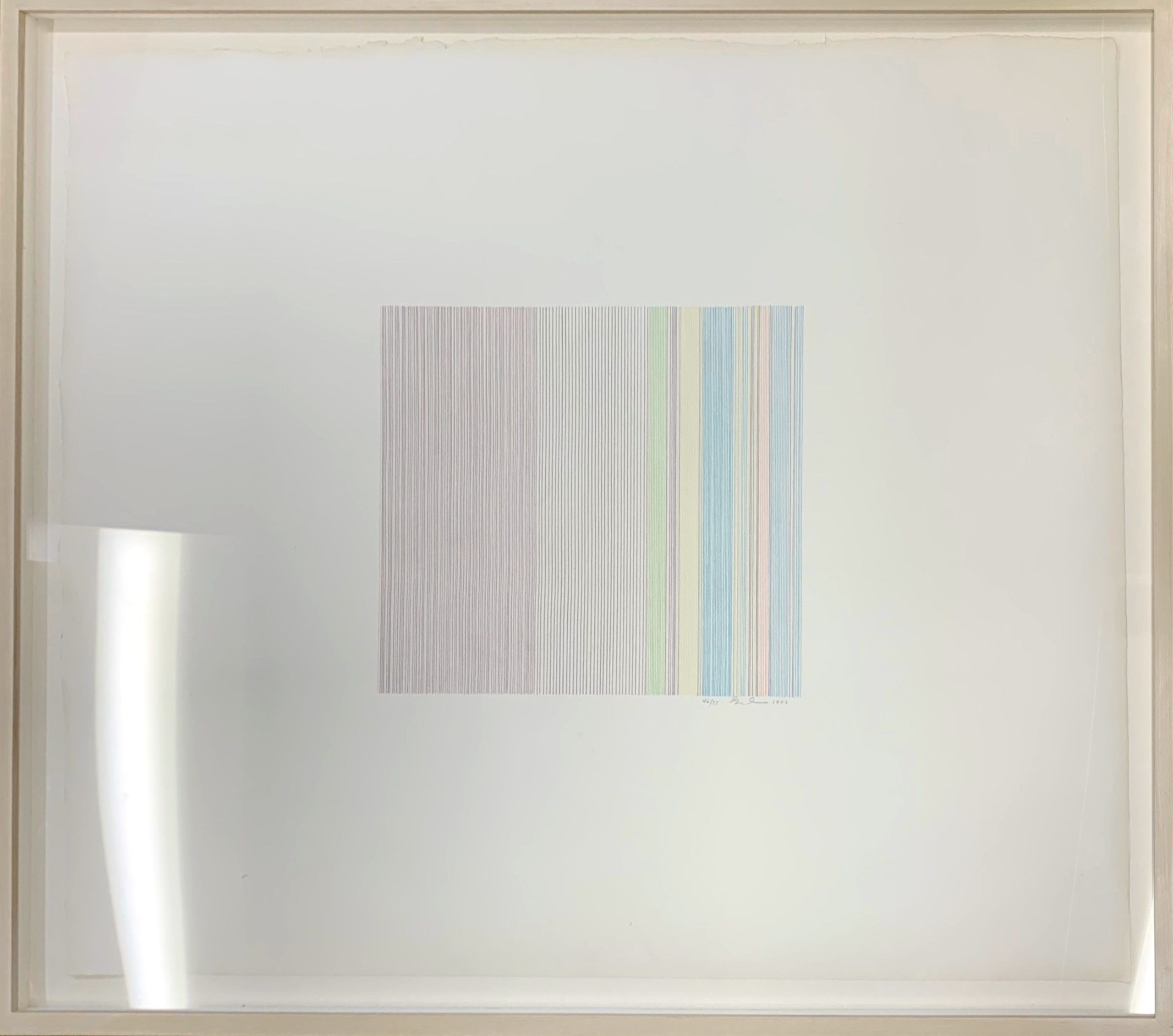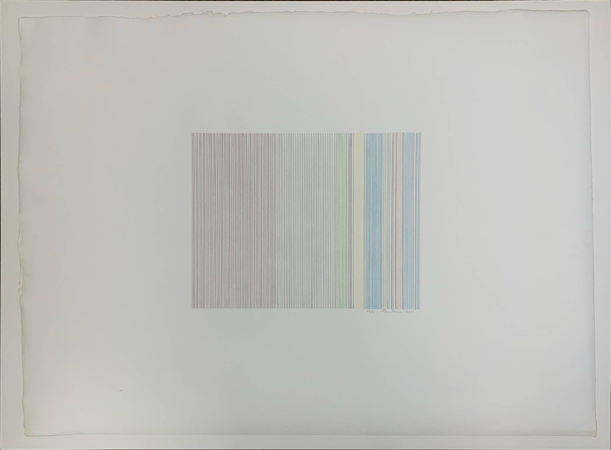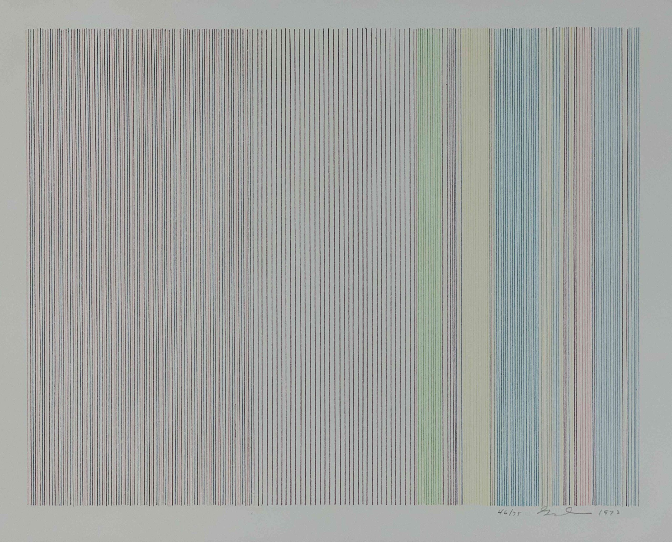 A masterfully-made lithograph with beautiful color and delicate lines, showing the lines which made Gene Davis famous.