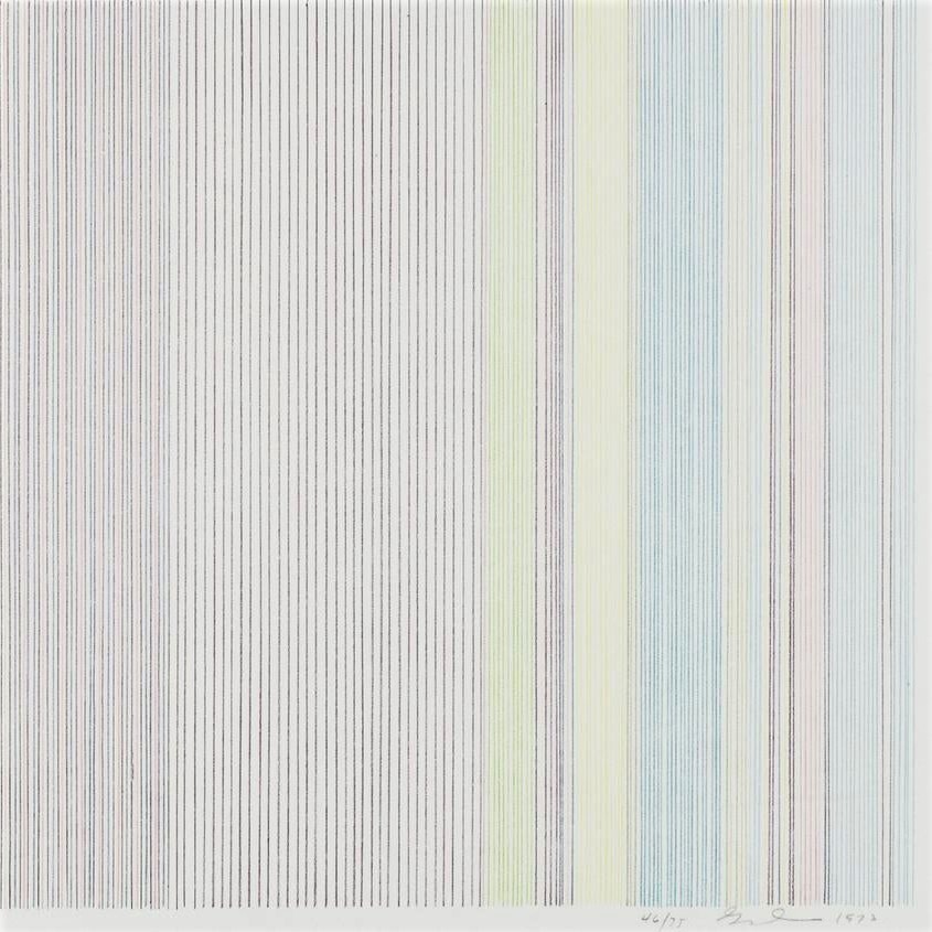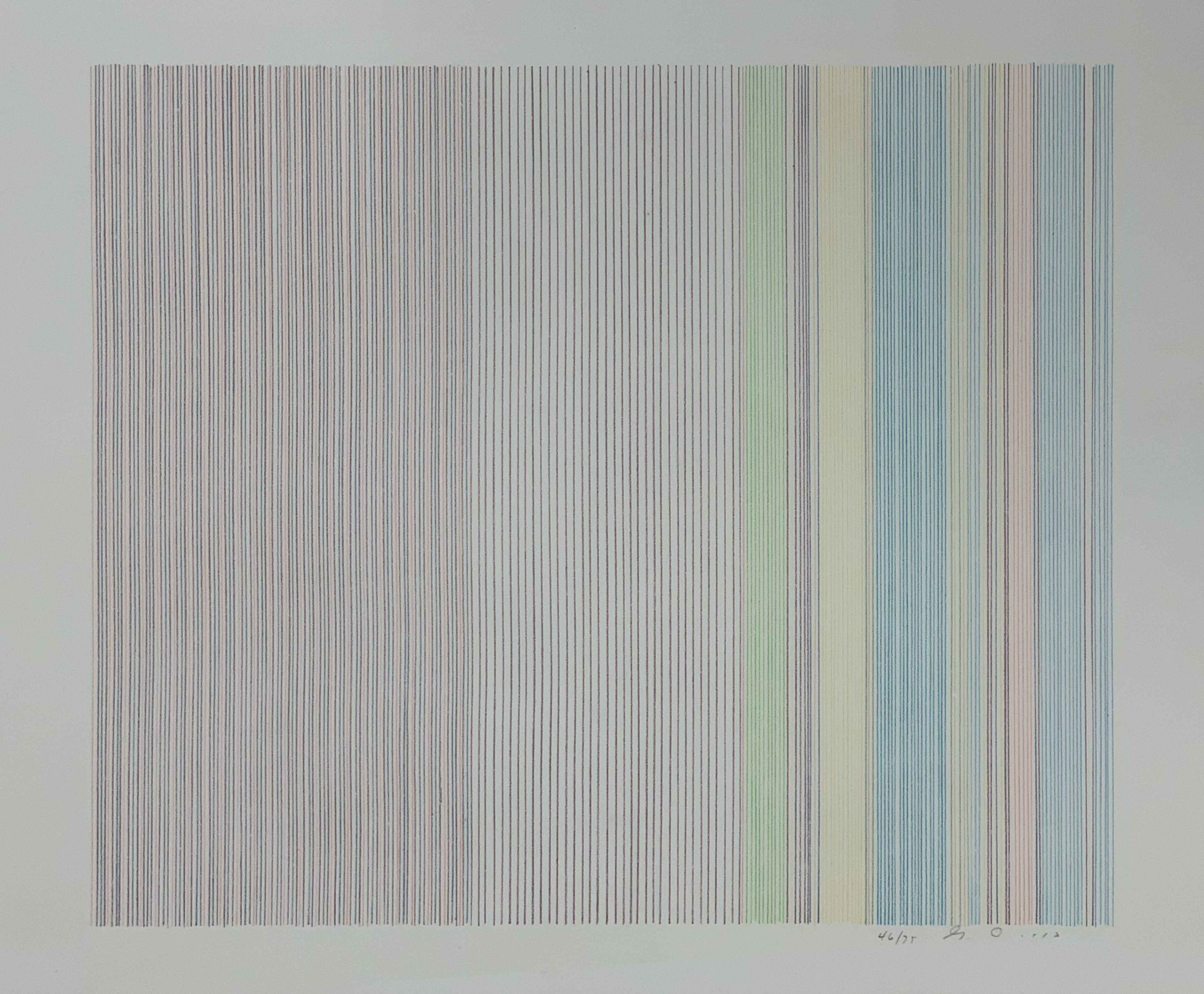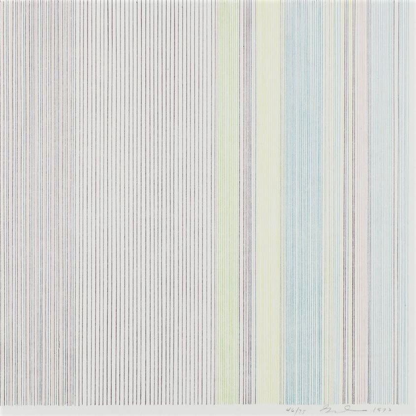 A masterfully-made lithograph with beautiful color and delicate lines, showing the lines which made Gene Davis famous.
