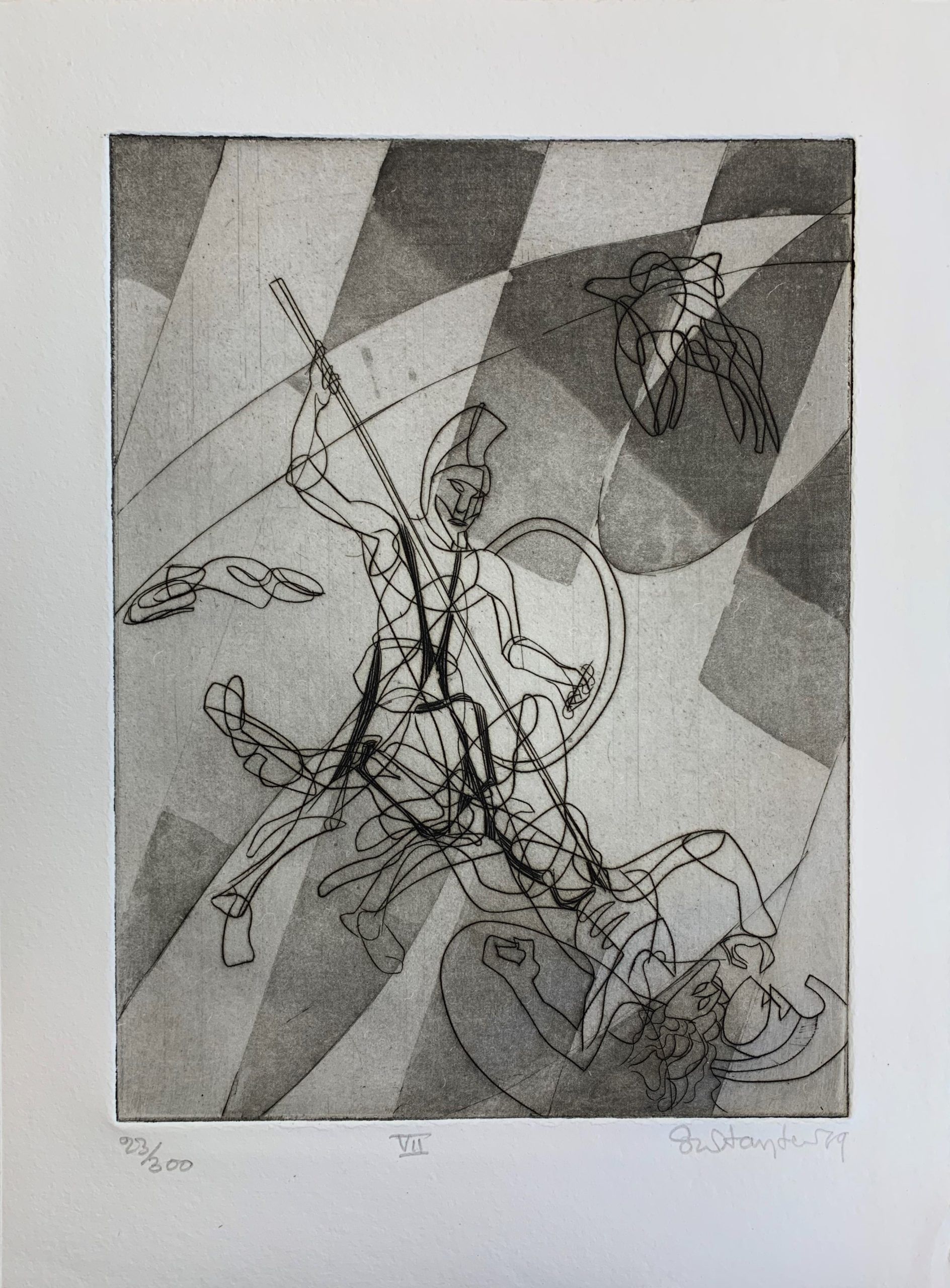 Some of the plates from the Hektor portfolio were printed by Hayter at Atelier 17 in Paris and others by Jack Shirreff at 107 Workshop Wiltshire in England.