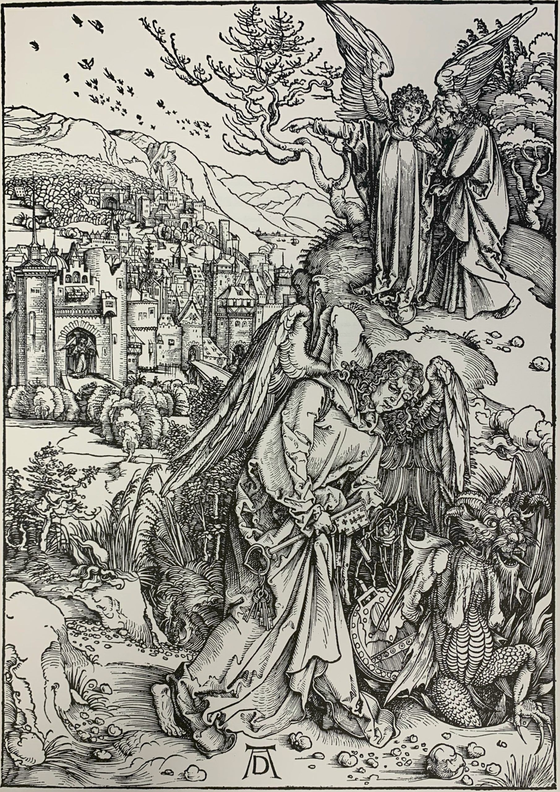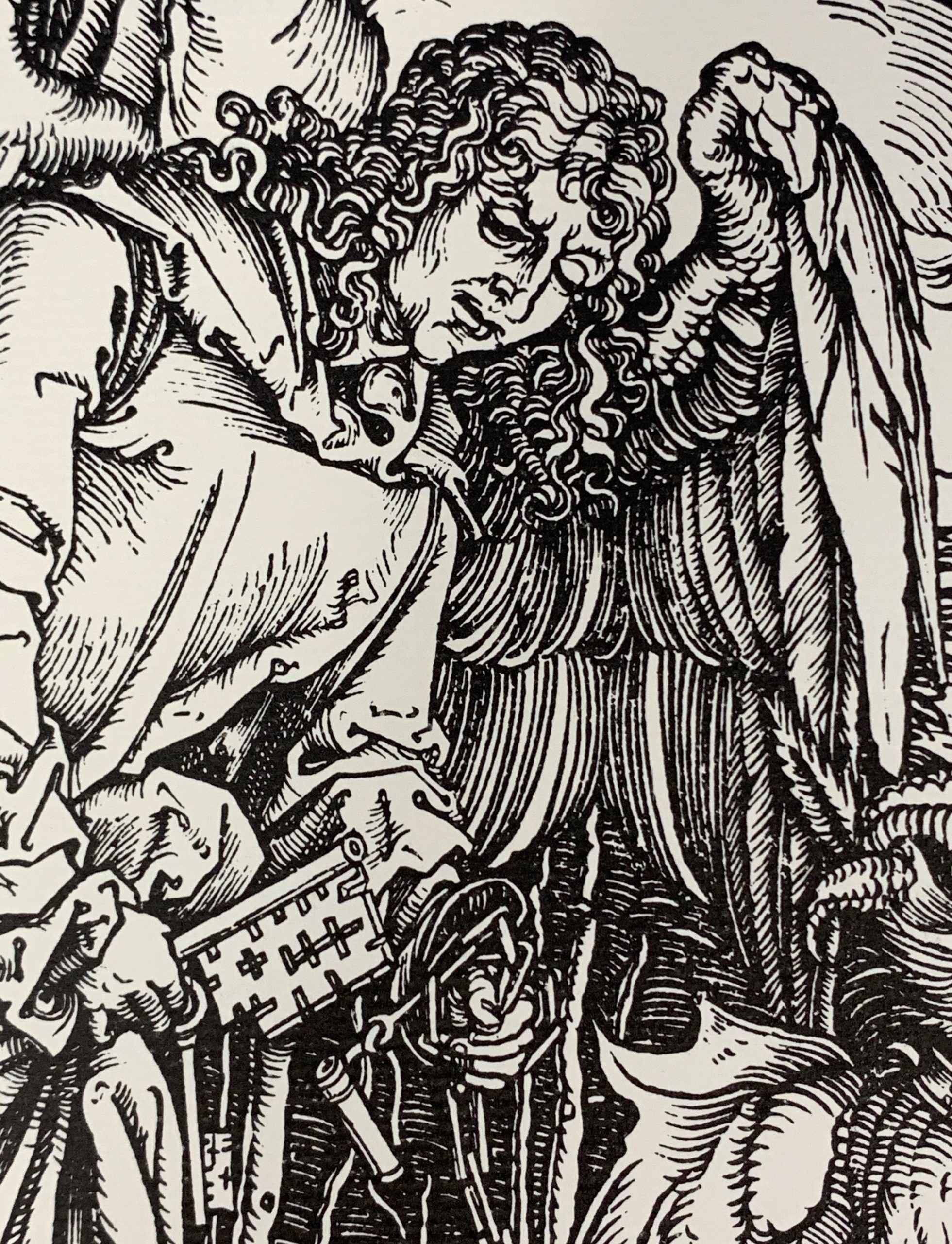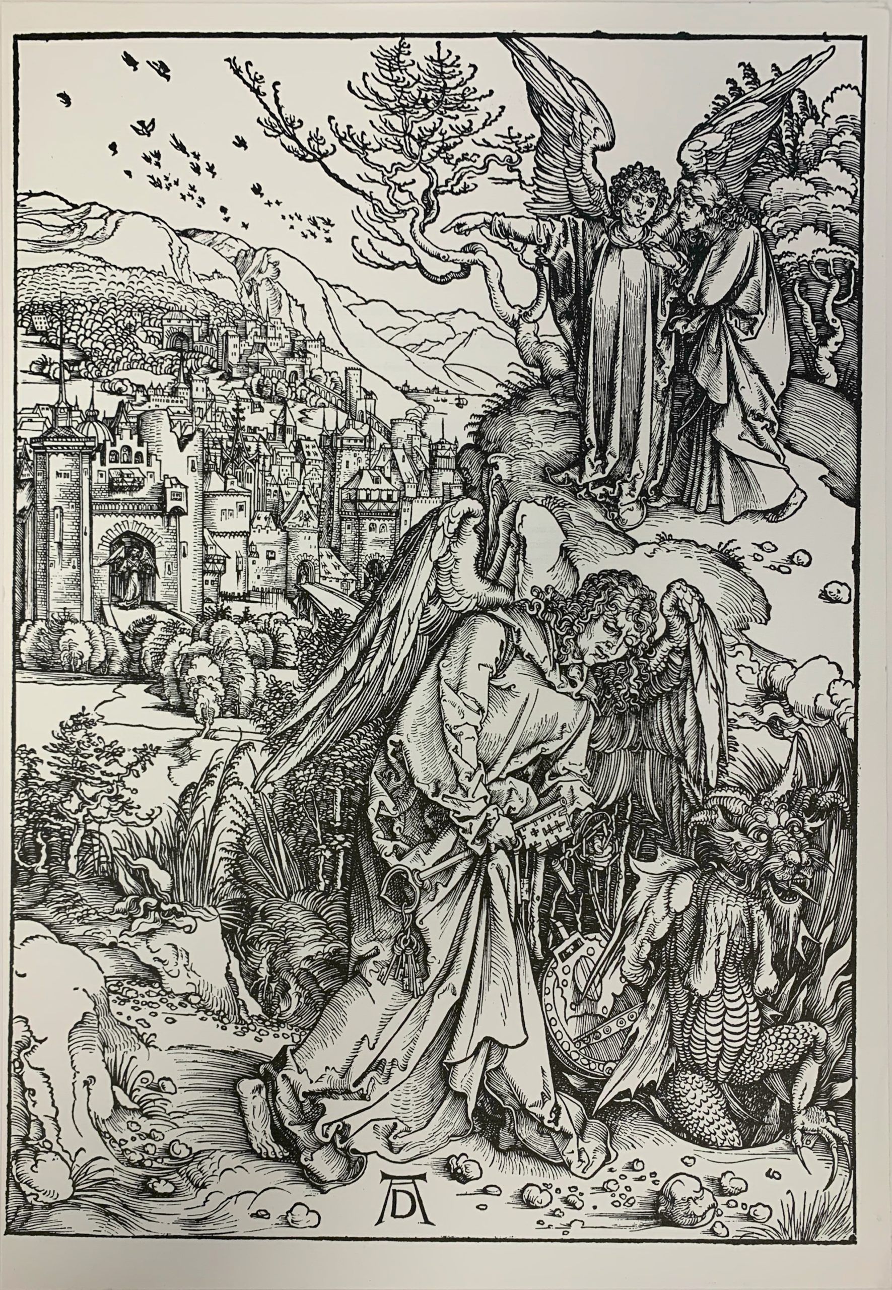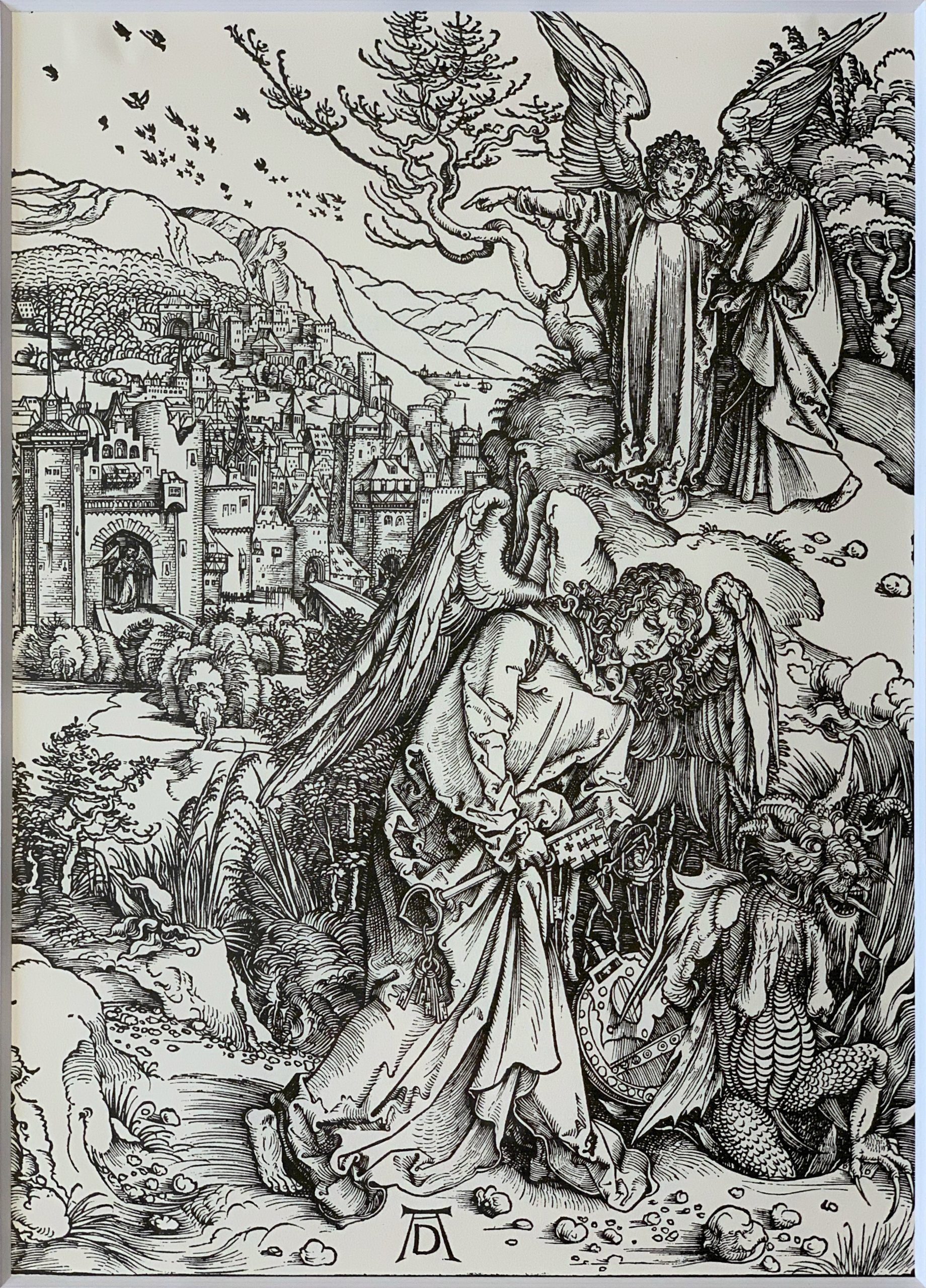 In the last years of the Fifteenth Century, German artist Albrecht Dürer created a set of fifteen woodcut prints which he called Apocalypse with Pictures. The last of that series was The Angel with the Key of the Bottomless Pit.