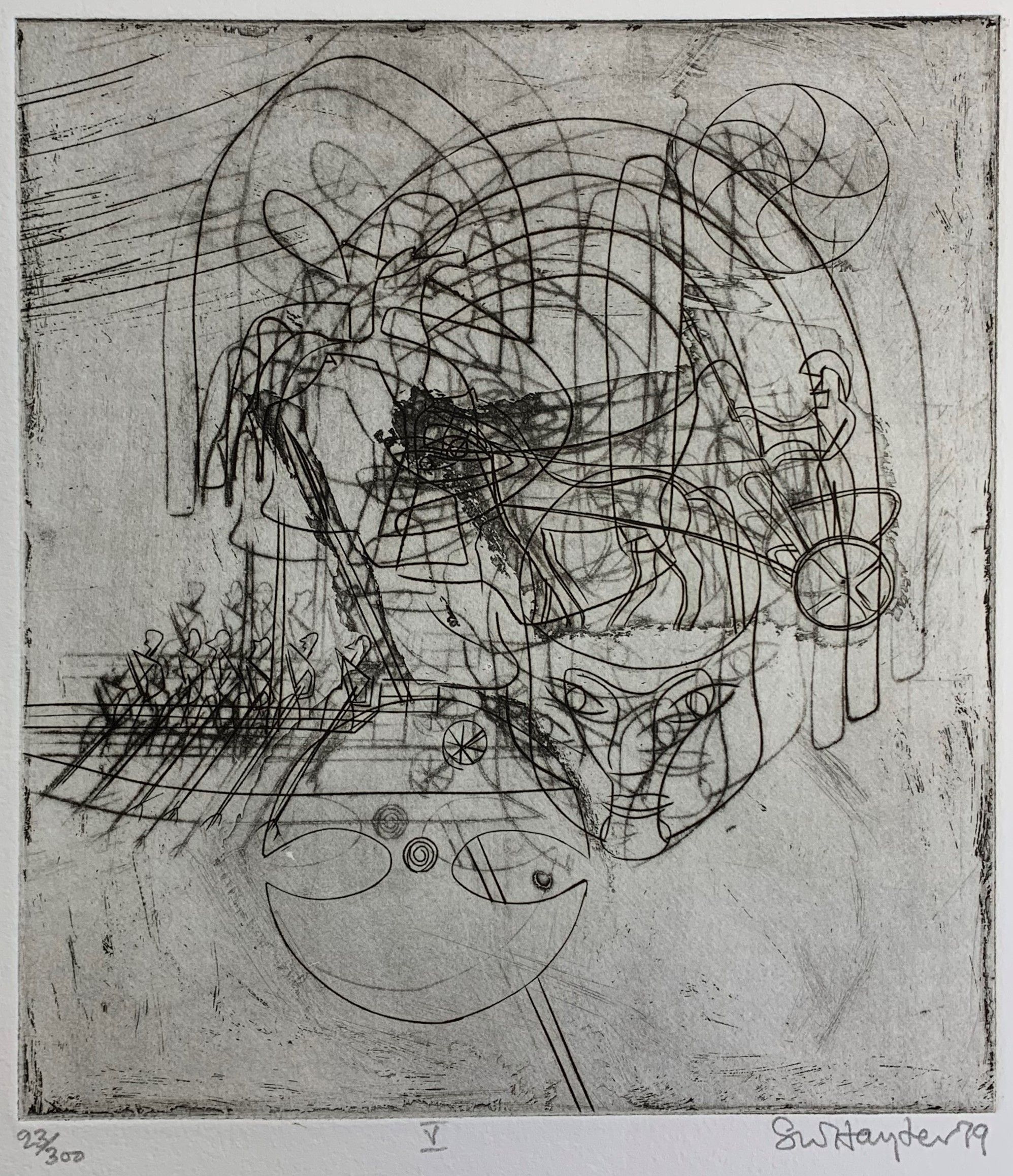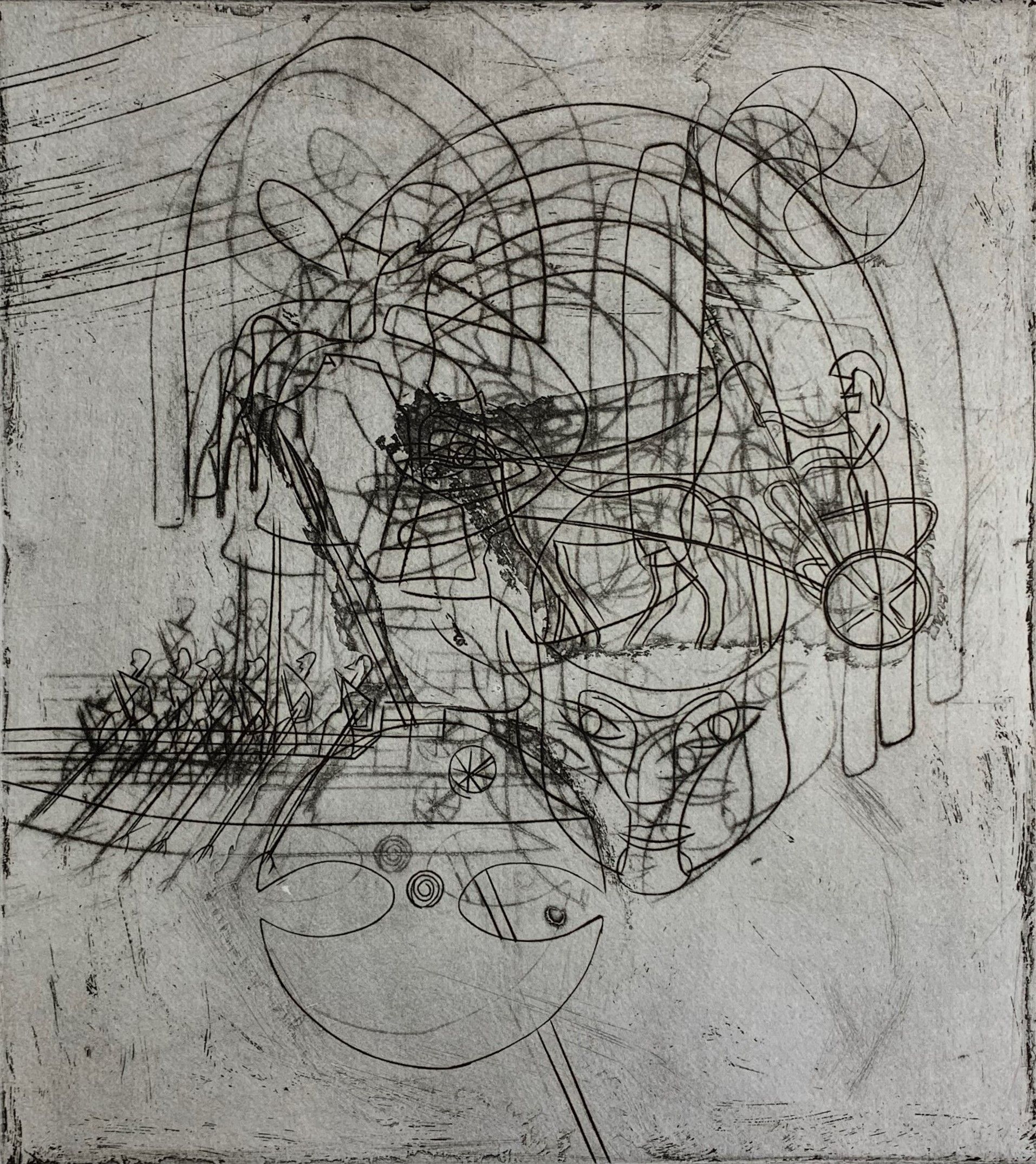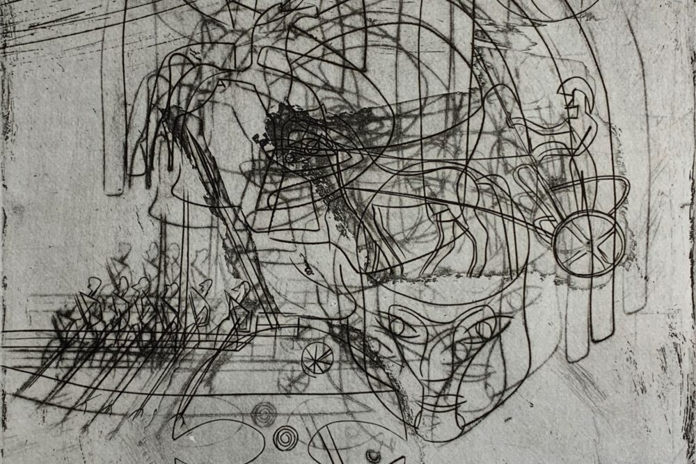 Echoes of War, an Intaglio engraving, the fifth of the nine intaglios by Stanley William Hayter that illustrate the book-length poem Death of Hektor by Irish poet Brian Coffey.