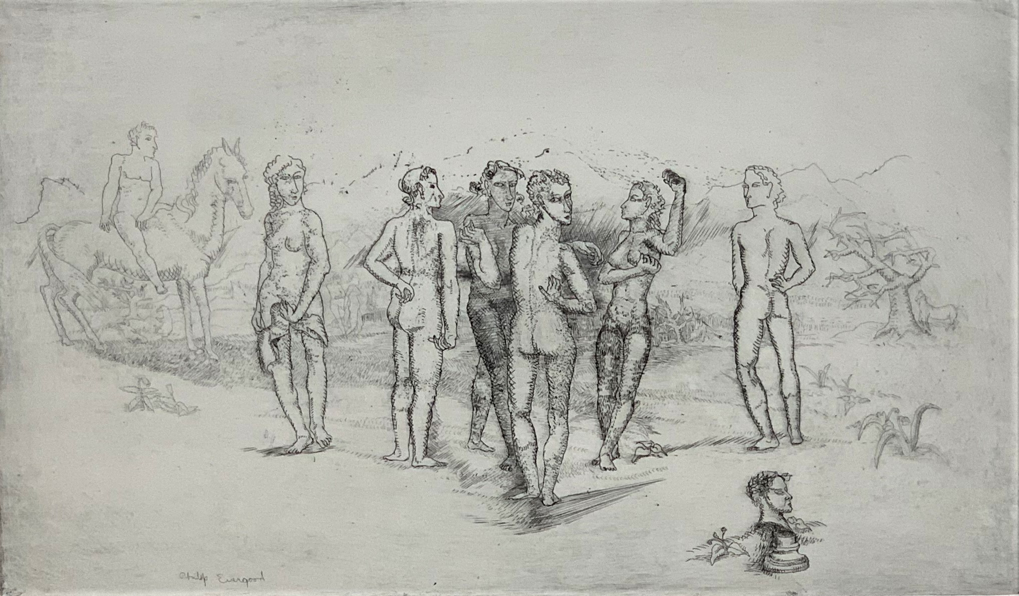 Philip Evergood was an observer of society. His works were largely commentary on the challenges of modern life. And no more so in any work than in this one, which portrays the dance contests popular in the 1920s, when contestants would—literally—kill themselves in dance contests because of their great desperation for money.