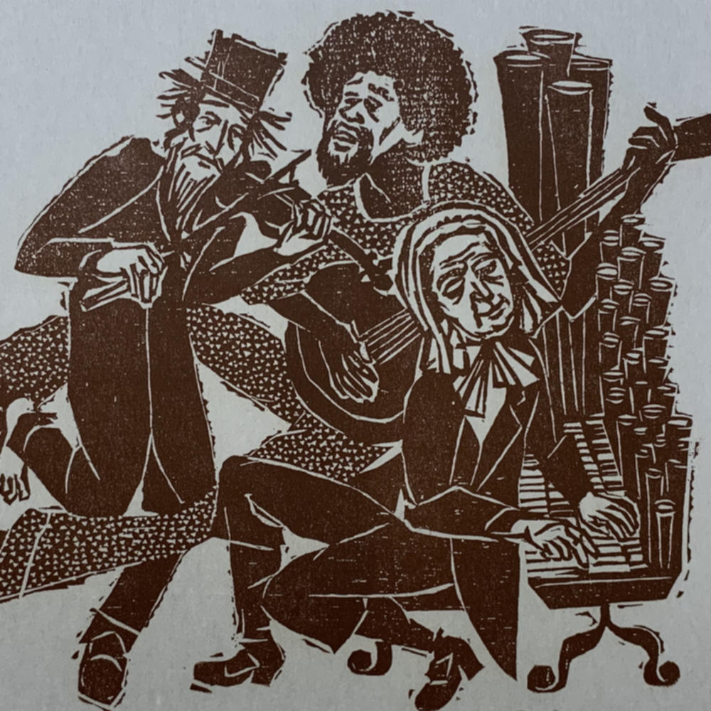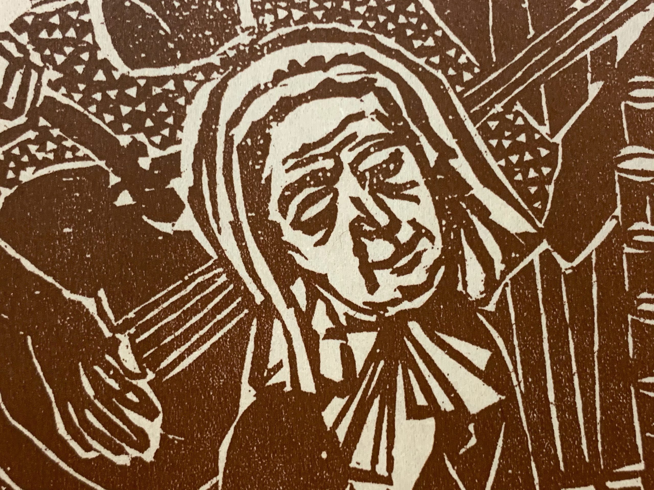 Monochrome woodcut.