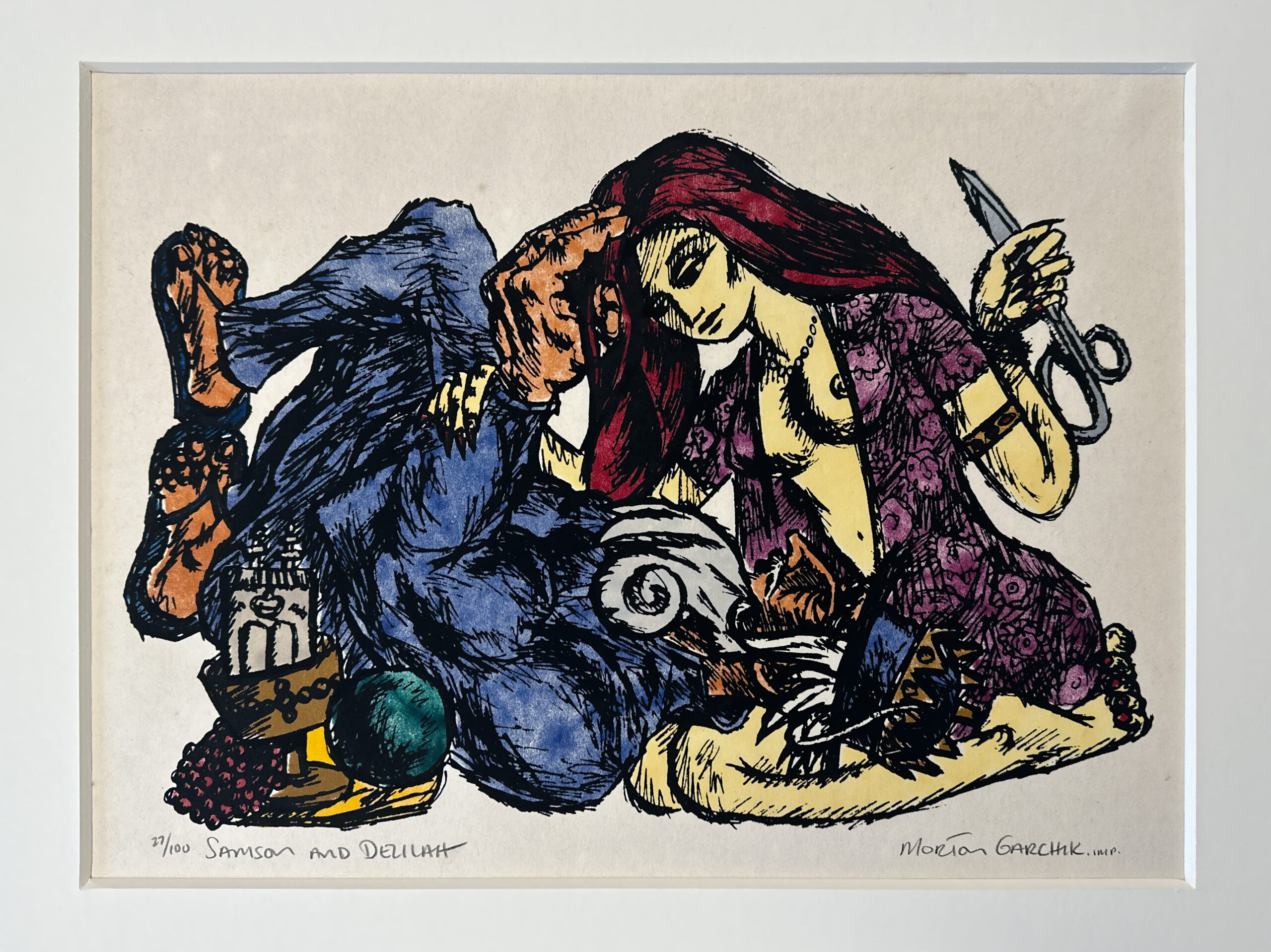 With this vivid woodcut, Morton Garchik illustrates Delilah’s treachery.