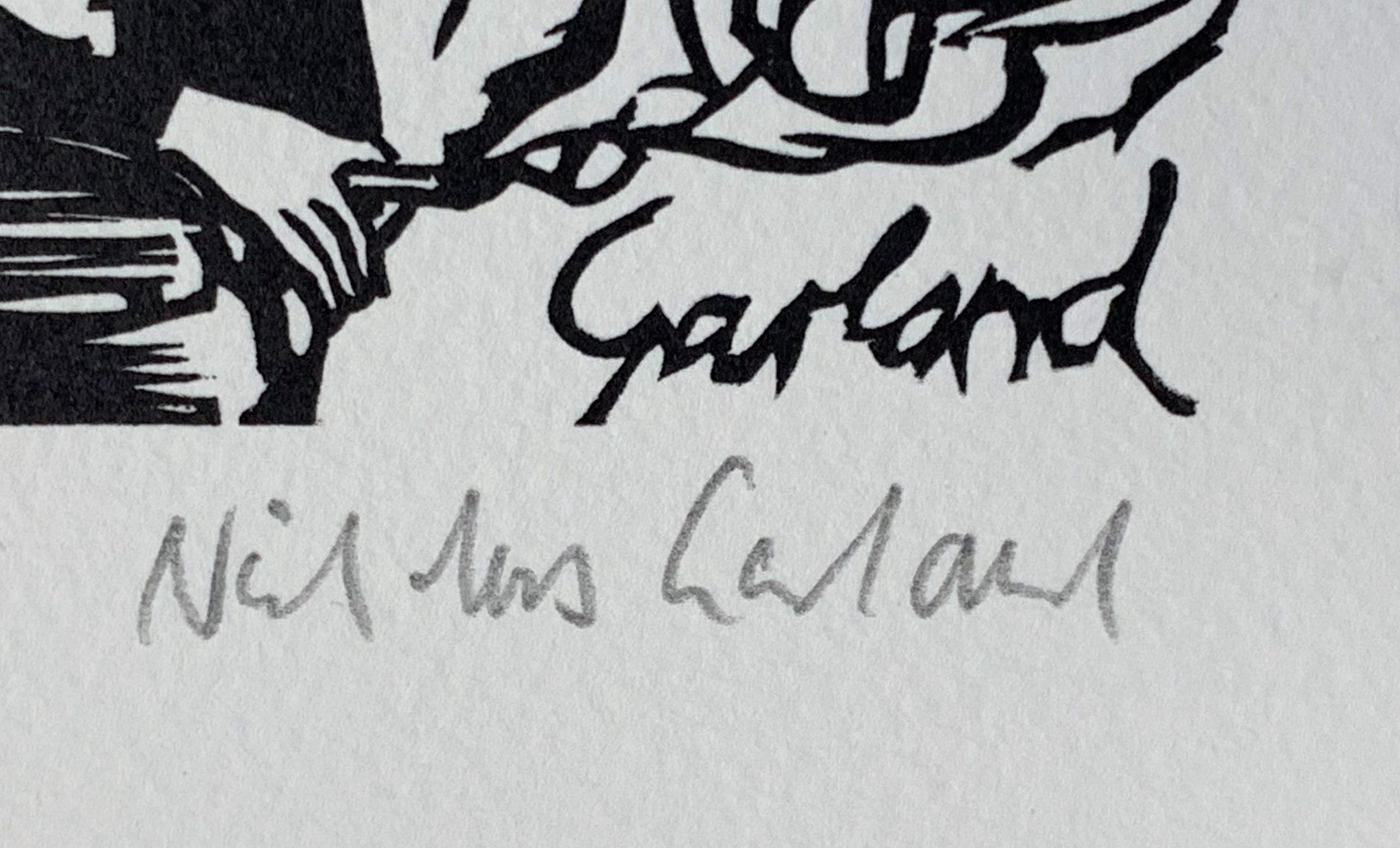 The 14 prints in the portfolio are all, every one of them, superb. As the artist Lucian Freud wrote in the Introduction, “These linocuts are of a high order: they are works of art.” Remarkably, despite the two-dimensionality of a linocut, these pictures have depth and richness in their content; the figures we see in these pictures are immediately recognizable (not as specific people but as characters and personalities).  The printing itself is only of the very highest quality, with luxurious inking on lovely paper.