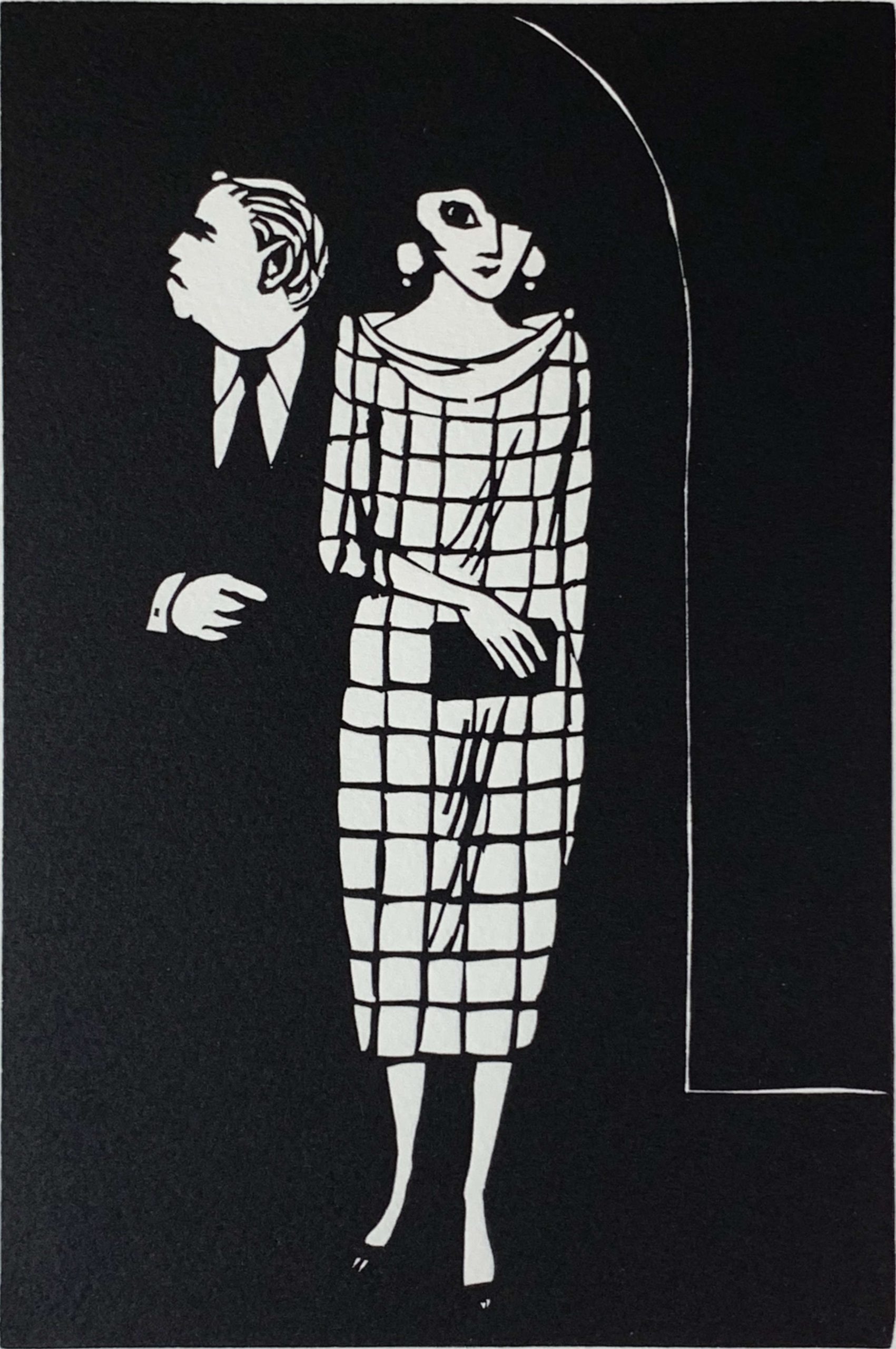 The 14 prints in the portfolio are all, every one of them, superb. As the artist Lucian Freud wrote in the Introduction, “These linocuts are of a high order: they are works of art.” Remarkably, despite the two-dimensionality of a linocut, these pictures have depth and richness in their content; the figures we see in these pictures are immediately recognizable (not as specific people but as characters and personalities). The printing itself is only of the very highest quality, with luxurious inking on lovely paper.
