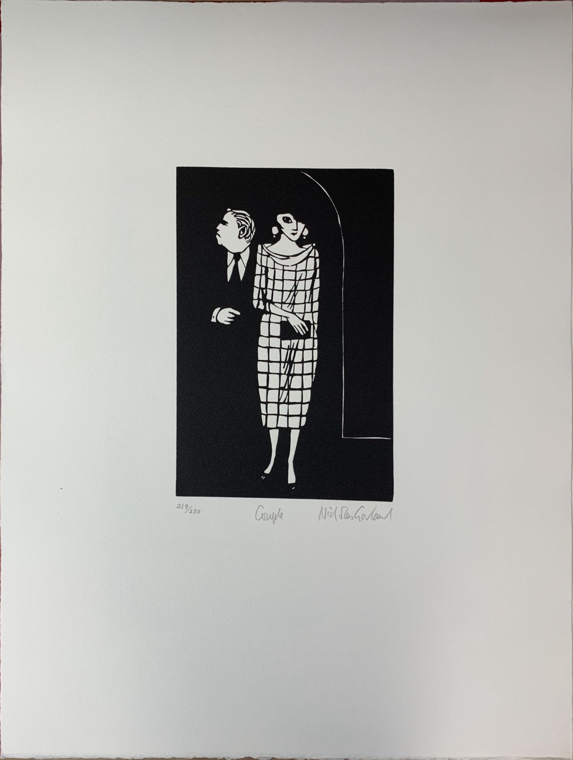 Anabel’s bar was widely considered to be the most elegant club in the London. This is a hyperbolic statement, but it is not hyperbole; it was actually thought of that way. The artist Nicholas Garland sat in the club and sketched the people he saw there. He later created the linocuts which were used to create the prints that formed the Anabel portfolio.