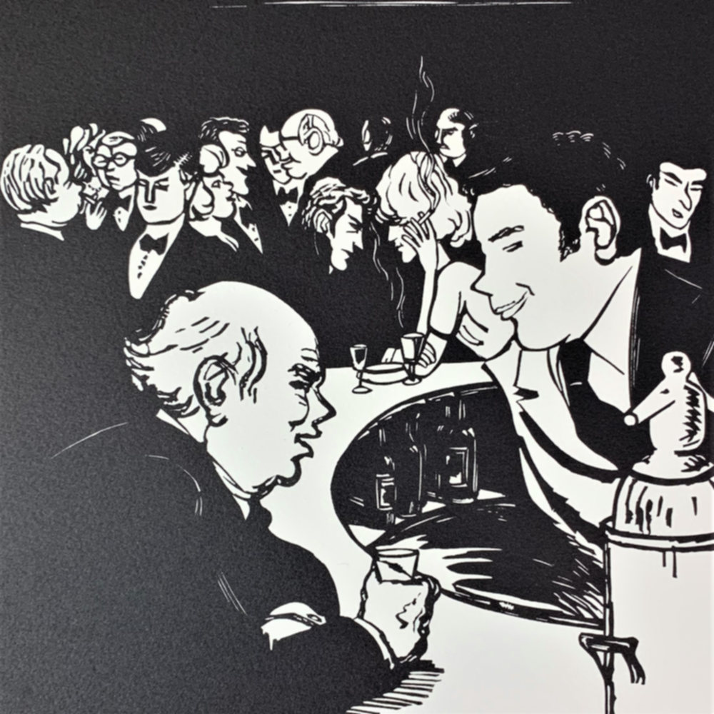 Anabel’s bar was widely considered to be the most elegant club in the London. This is a hyperbolic statement, but it is not hyperbole; it was actually thought of that way. The artist Nicholas Garland sat in the club and sketched the people he saw there. He later created the linocuts which were used to create the prints that formed the Anabel portfolio.