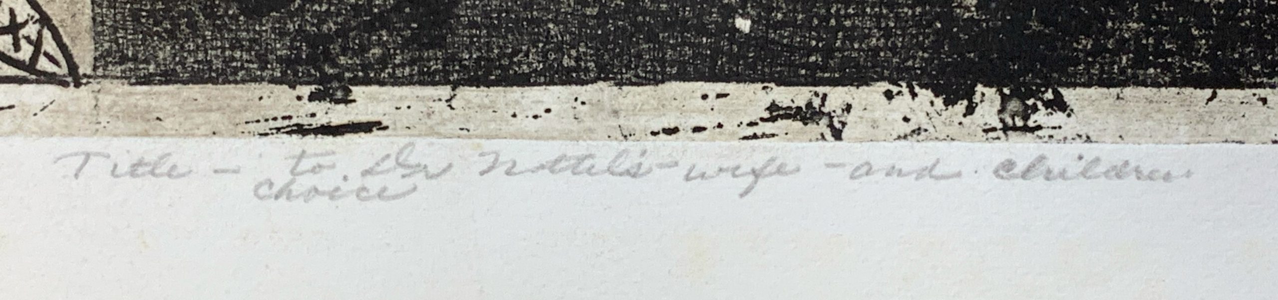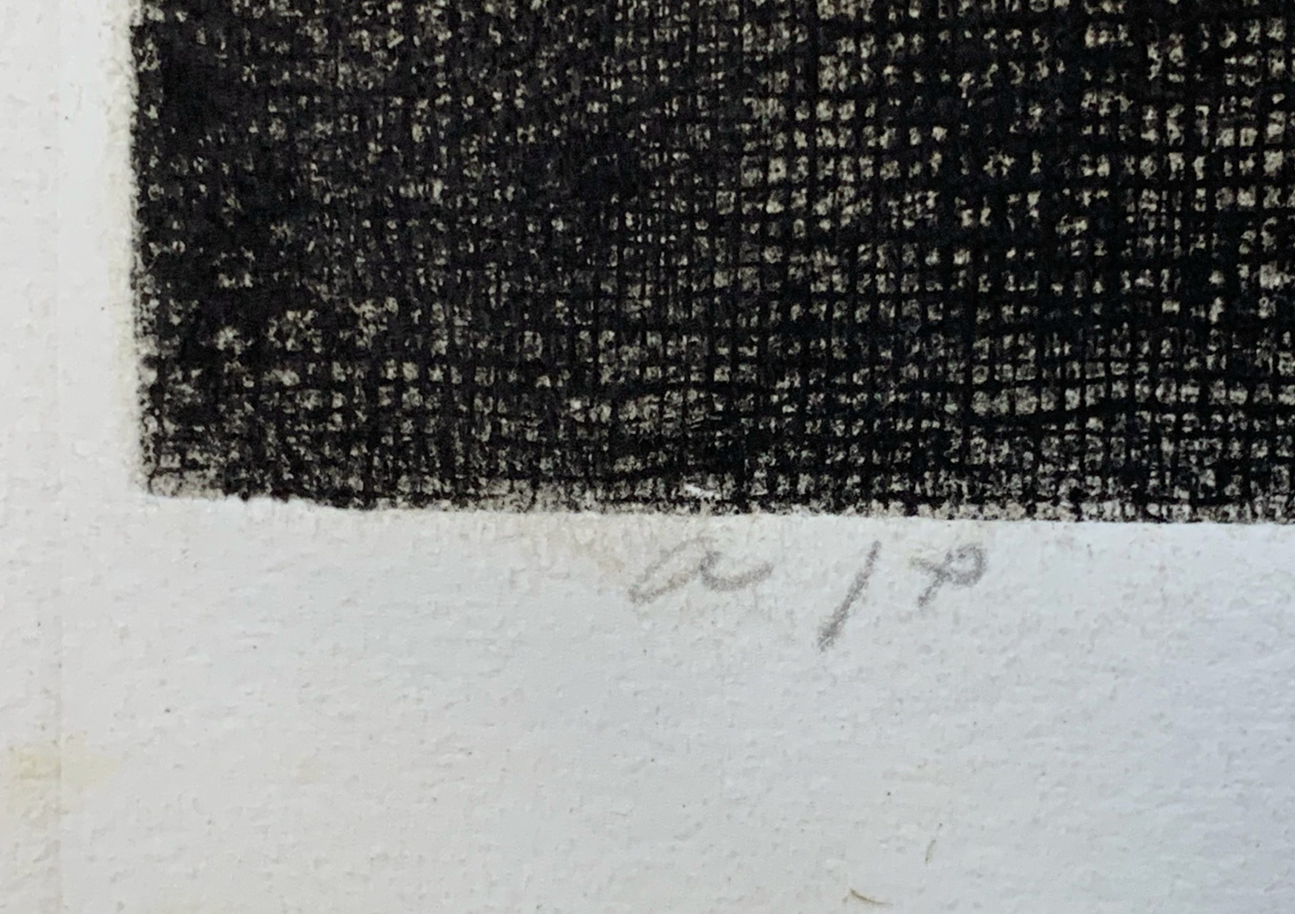 Hand-signed in pencil by the artist en recto lower center.  Marked in pencil as an Artist’s Proof (“A/P”) and dated (“-72”) en recto lower right.  Inscribed “To Dr. Nattel’s wife and children” en verso lower left.