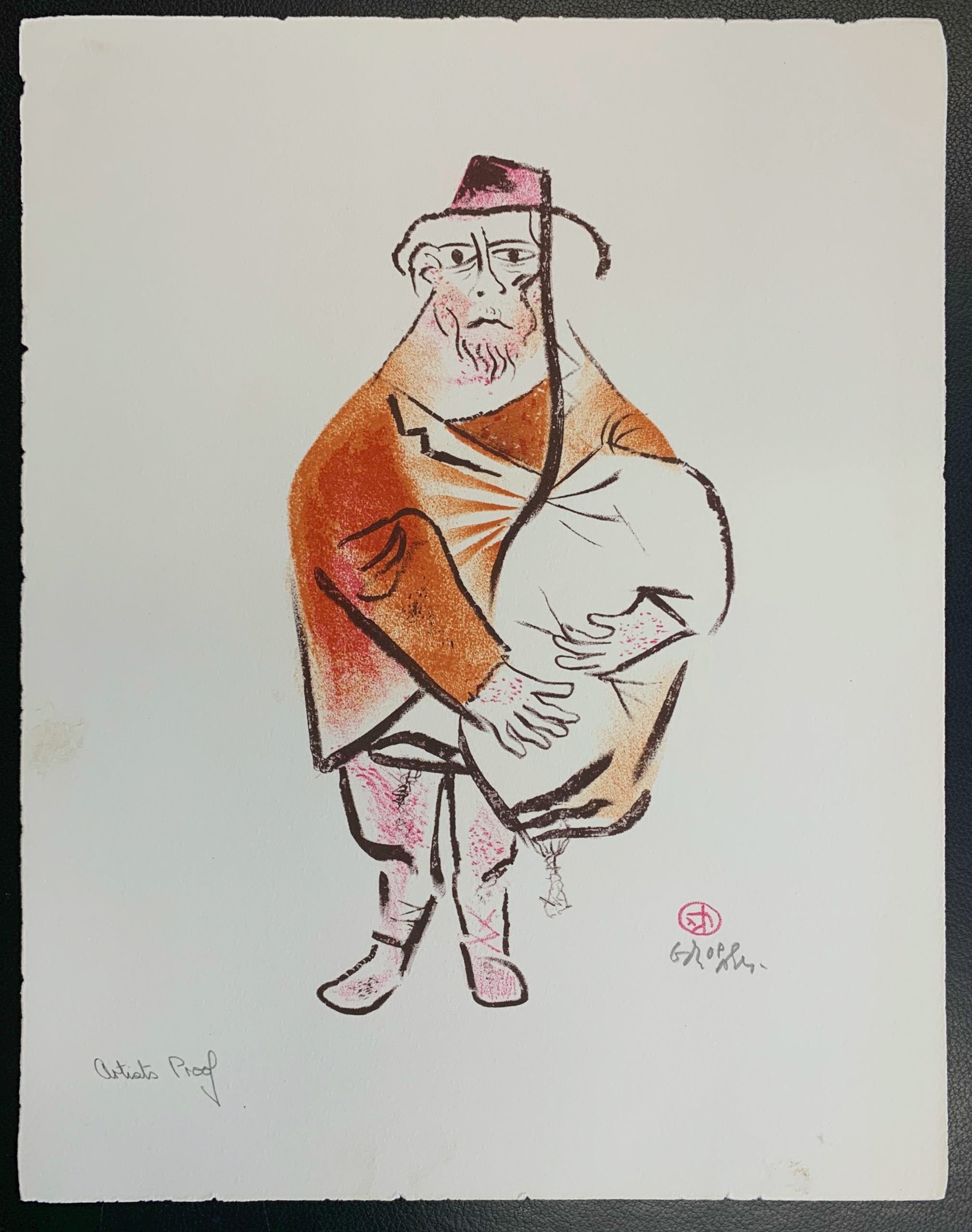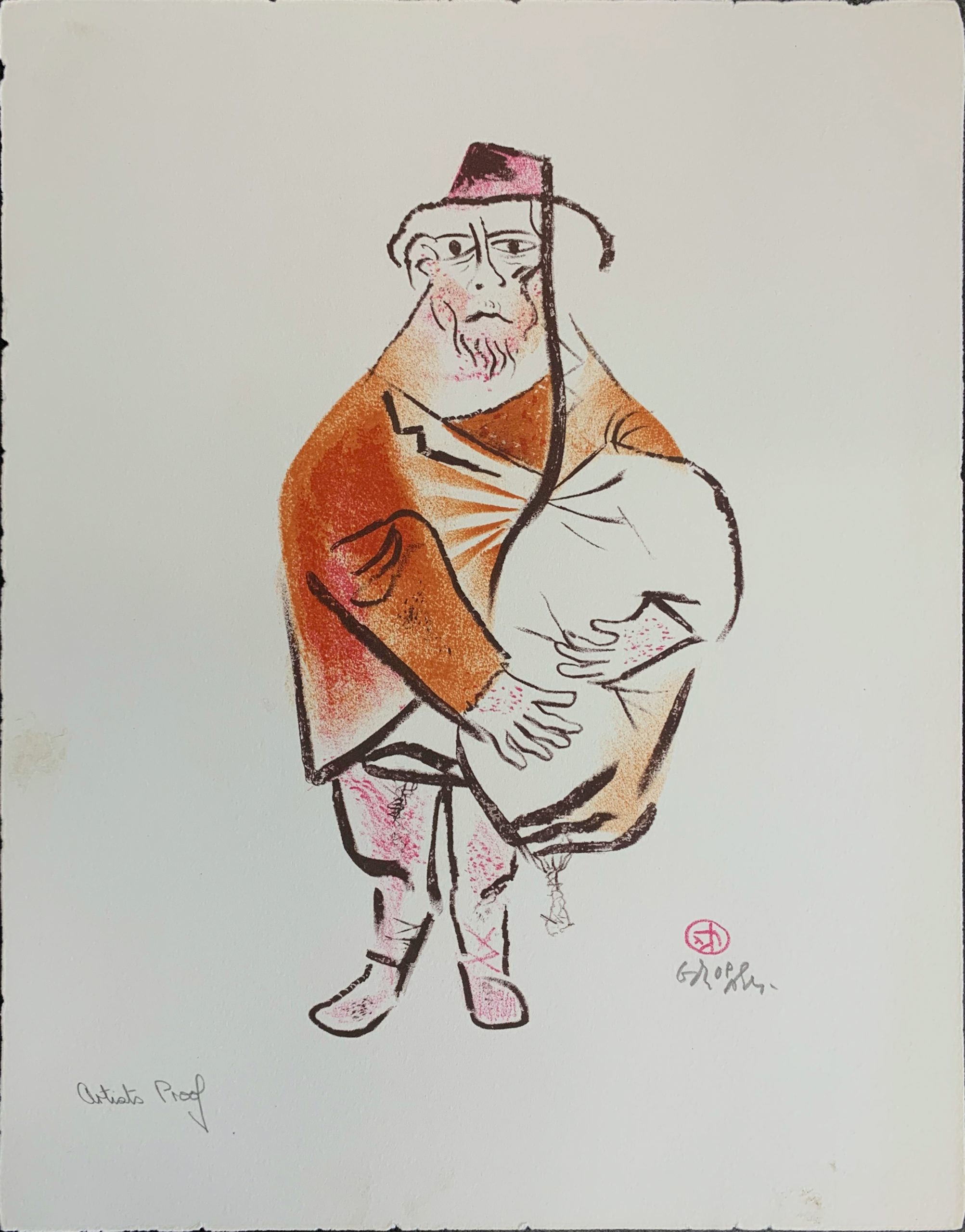 Harkening back to his Jewish roots, William Gropper published in 1970 a series of twenty-four color lithographs on Jewish village life called The Shtetl. This series was purchased with the Peter Graham Fund for Radicalism in Literature and Art. Gropper had these remarks on his artwork: