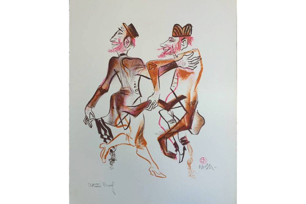 Harkening back to his Jewish roots, William Gropper published in 1970 a series of twenty-four color lithographs on Jewish village life called The Shtetl. This series was purchased with the Peter Graham Fund for Radicalism in Literature and Art. Gropper had these remarks on his artwork: