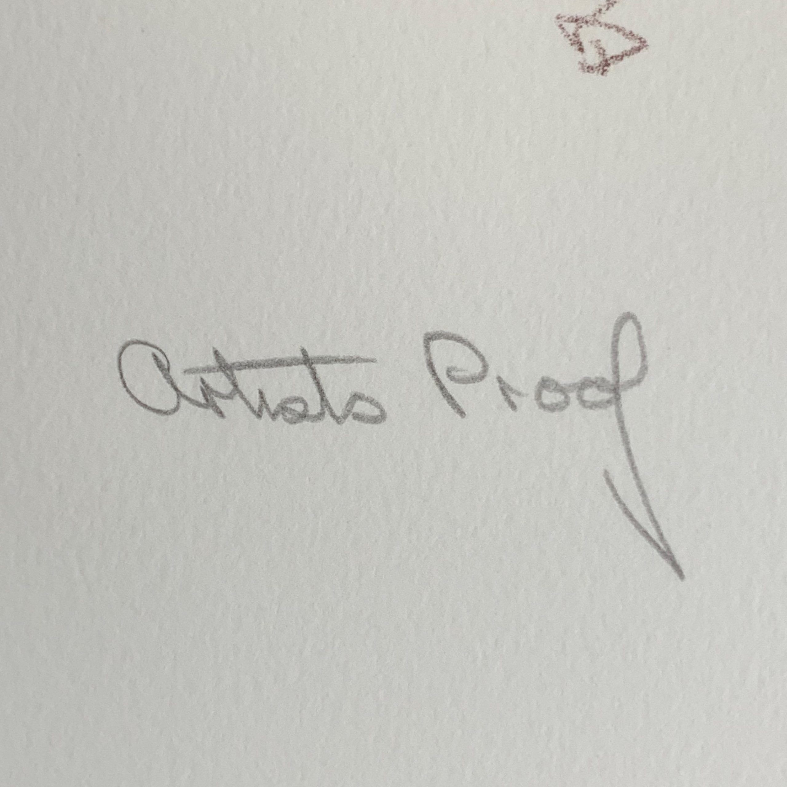 Hand-signed in pencil by the artist with his name and a decorative set of initials en recto lower right. Marked in pencil by the artist’s hand as an Artist’s Proof en recto lower left.