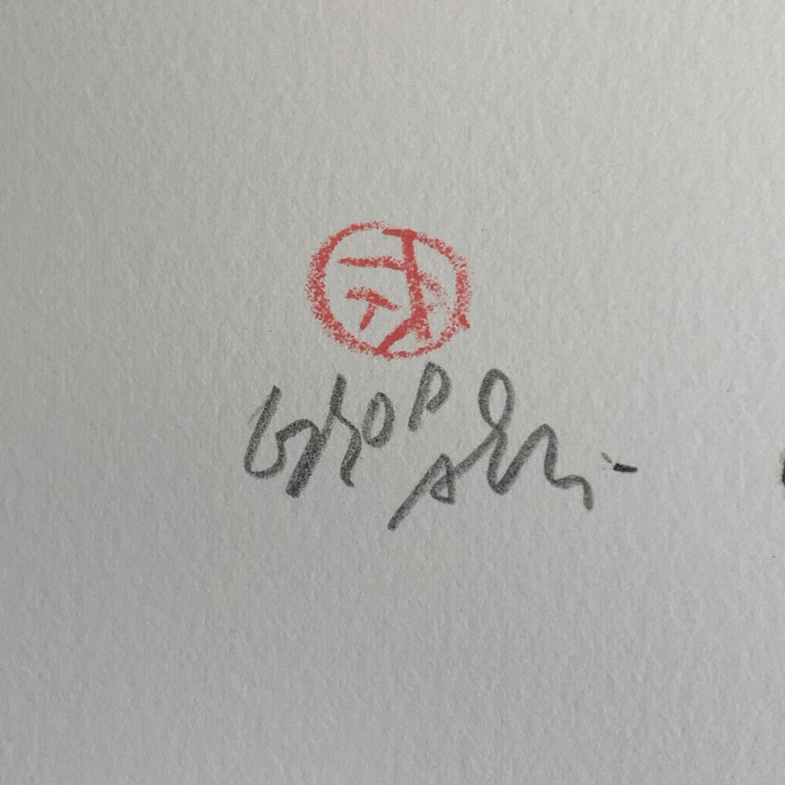 Hand-signed in pencil by the artist with his name and a decorative set of initials en recto lower right.  Marked in pencil by the artist’s hand as an Artist’s Proof en recto lower left.