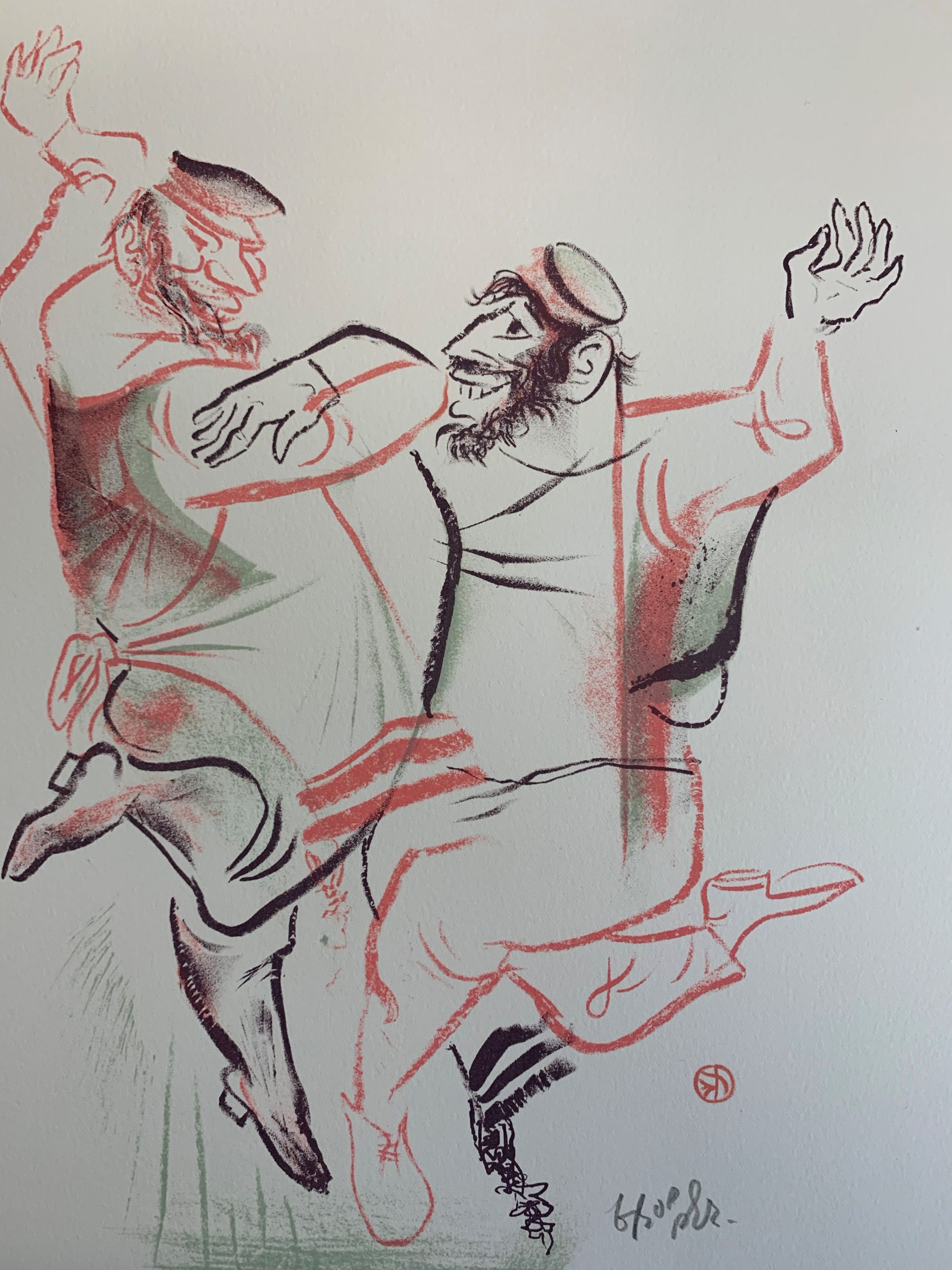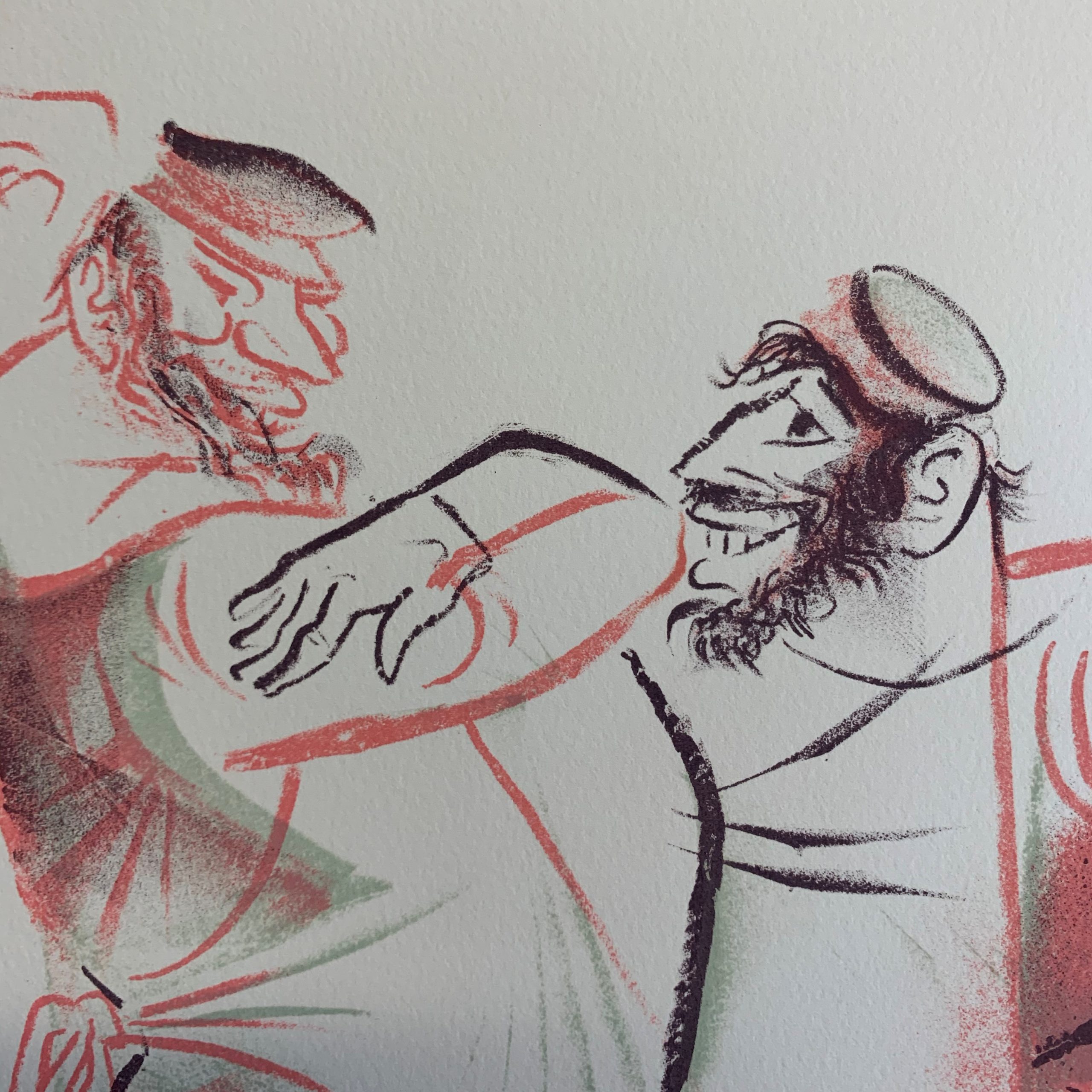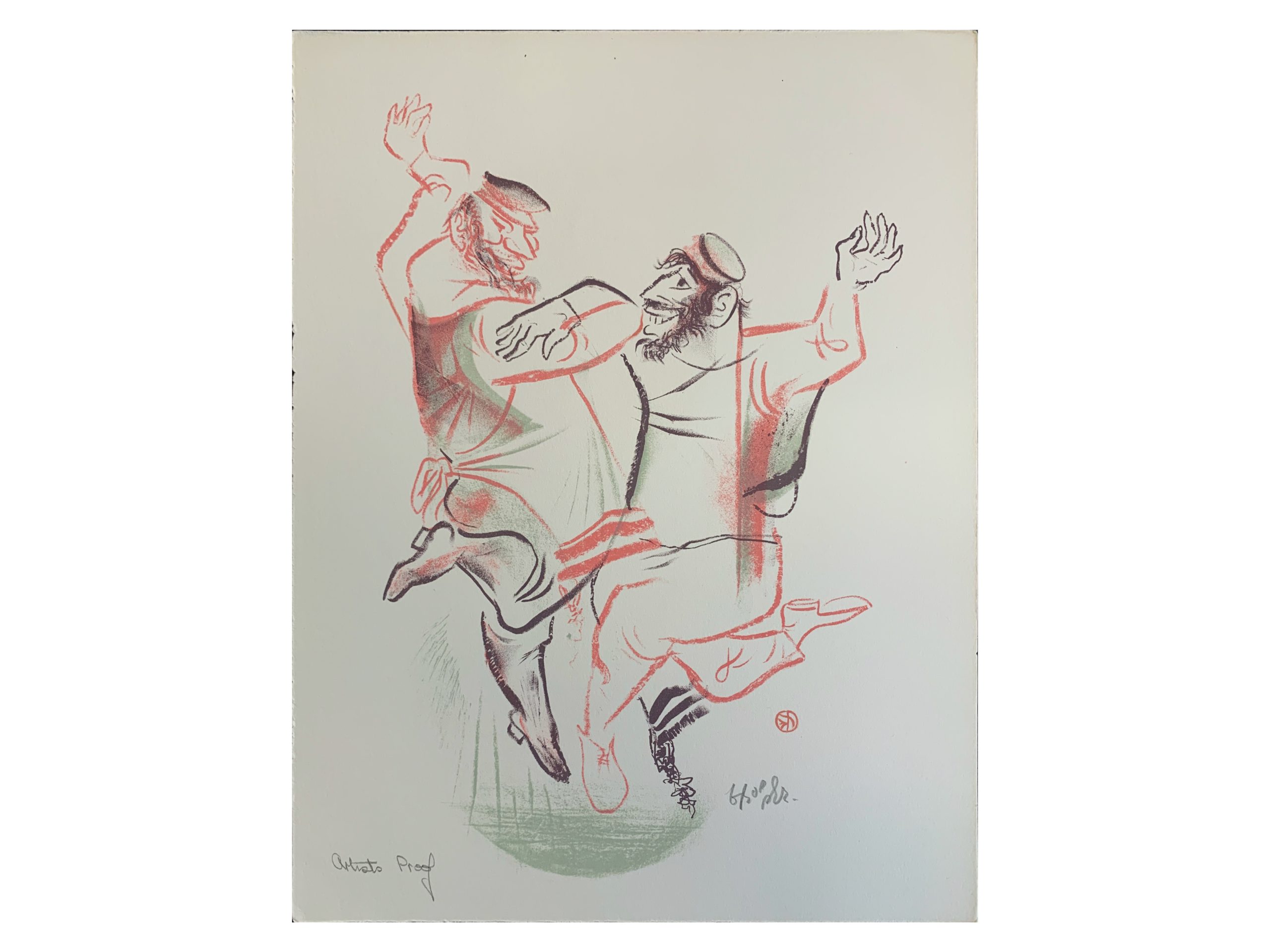 Harkening back to his Jewish roots, William Gropper published in 1970 a series of twenty-four color lithographs on Jewish village life called The Shtetl. This series was purchased with the Peter Graham Fund for Radicalism in Literature and Art. Gropper had these remarks on his artwork: