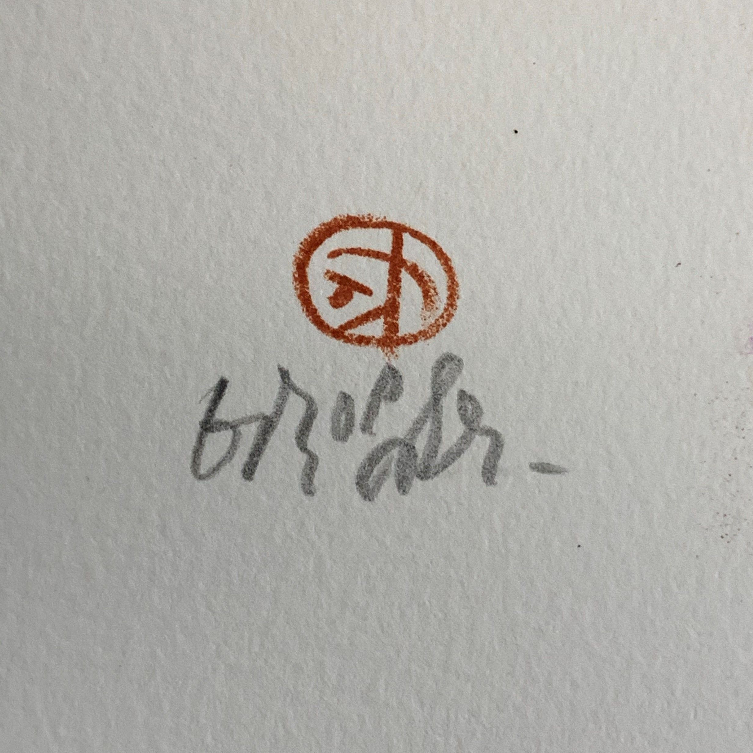 Hand-signed in pencil by the artist with his name and a decorative set of initials en recto lower right. Marked in pencil by the artist’s hand as an Artist’s Proof en recto lower left.