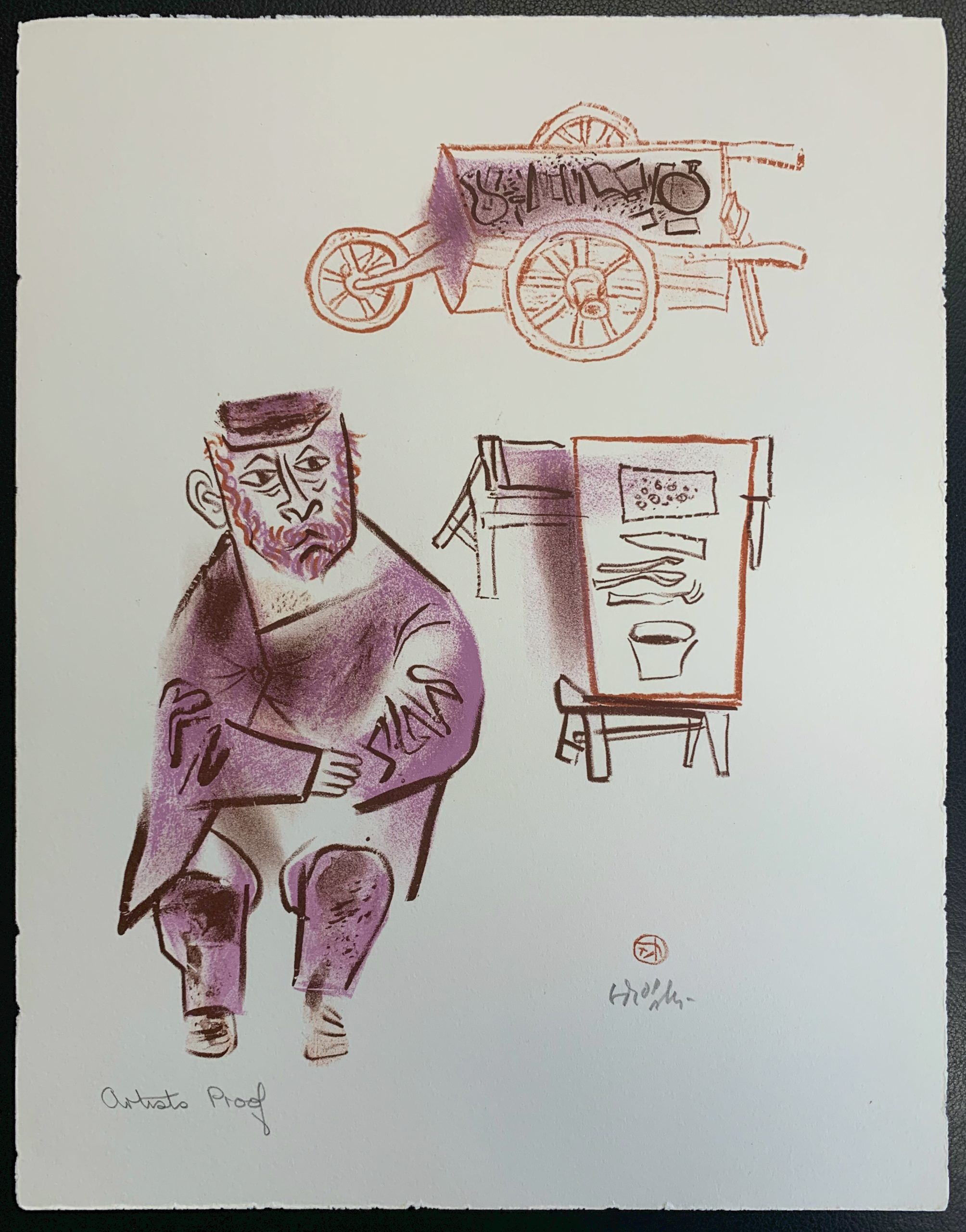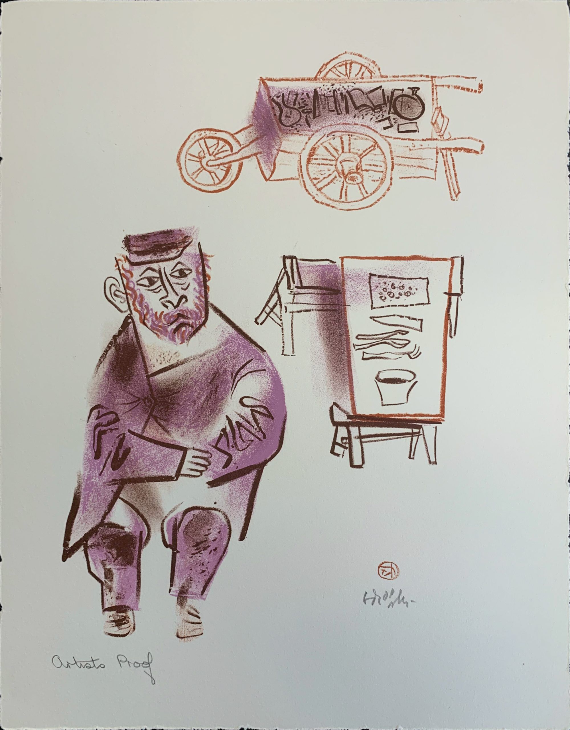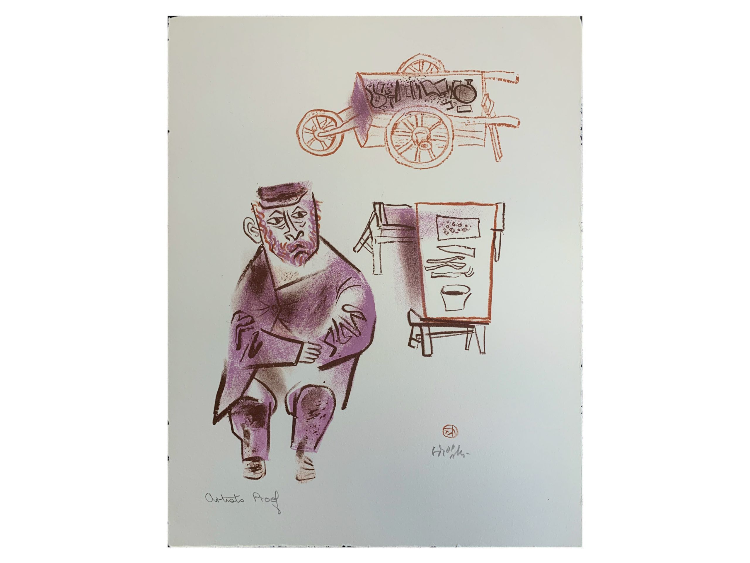 Hand-signed in pencil by the artist with his name and a decorative set of initials en recto lower right. Marked in pencil by the artist’s hand as an Artist’s Proof en recto lower left.