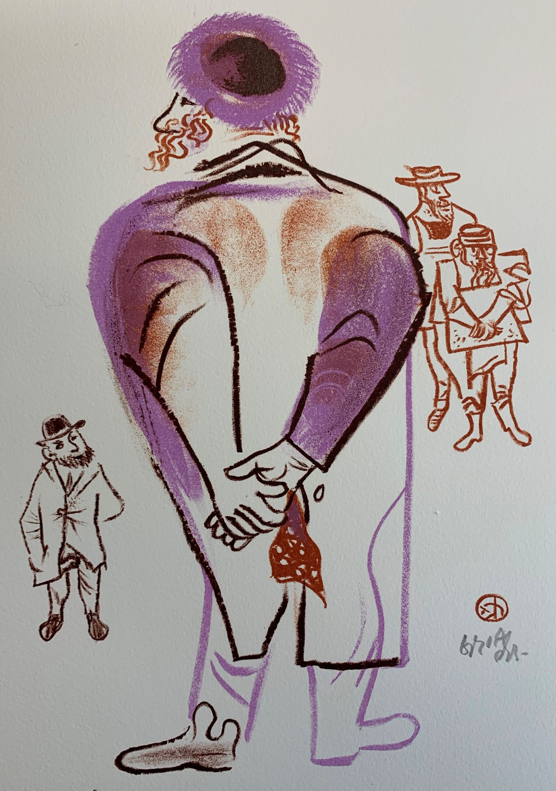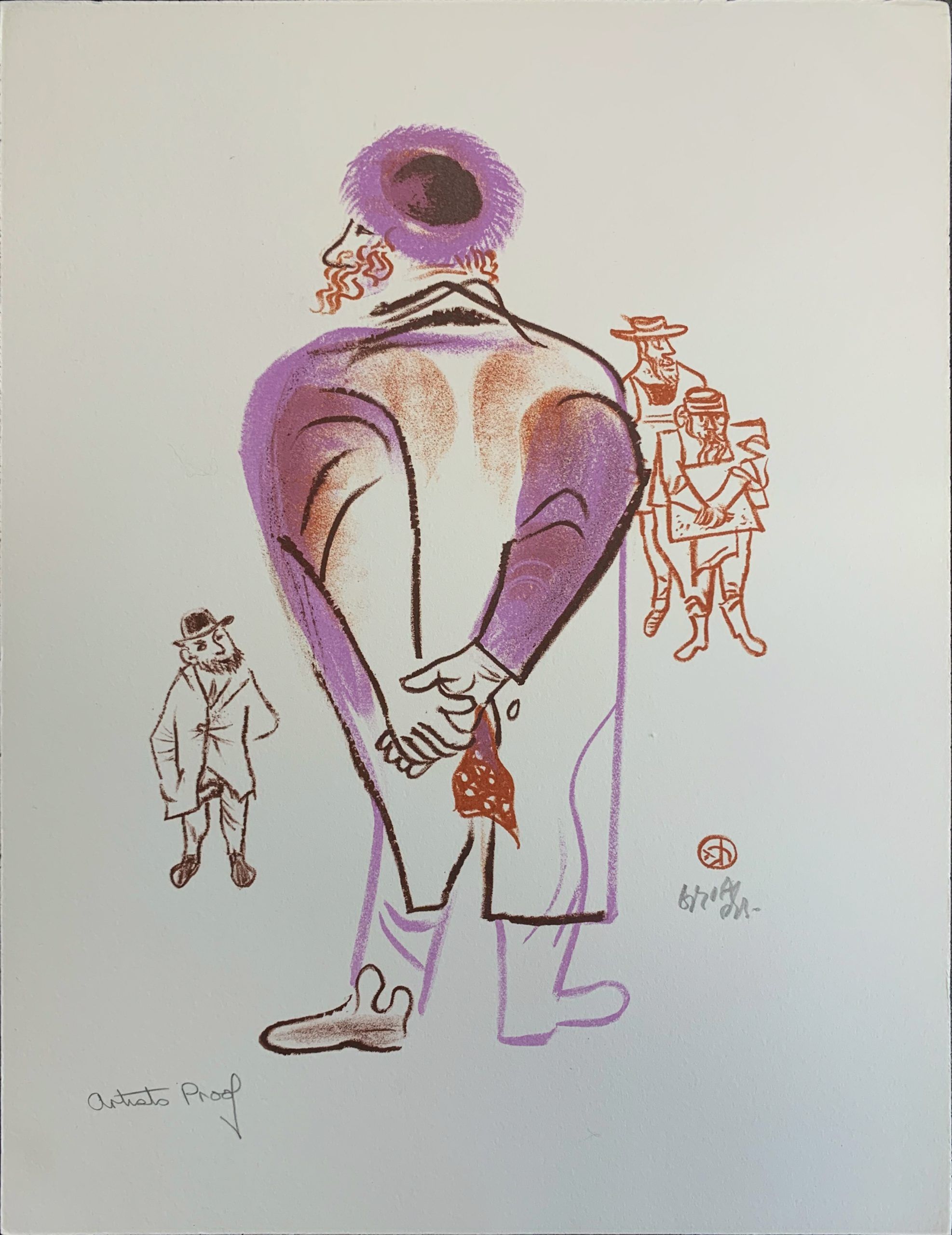 Harkening back to his Jewish roots, William Gropper published in 1970 a series of twenty-four color lithographs on Jewish village life called The Shtetl. This series was purchased with the Peter Graham Fund for Radicalism in Literature and Art. Gropper had these remarks on his artwork: