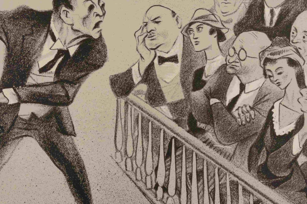 William Gropper was one of America’s greatest social realist artists.  He made many images of lawyers—but whether celebrating or skewering is not always clear.
