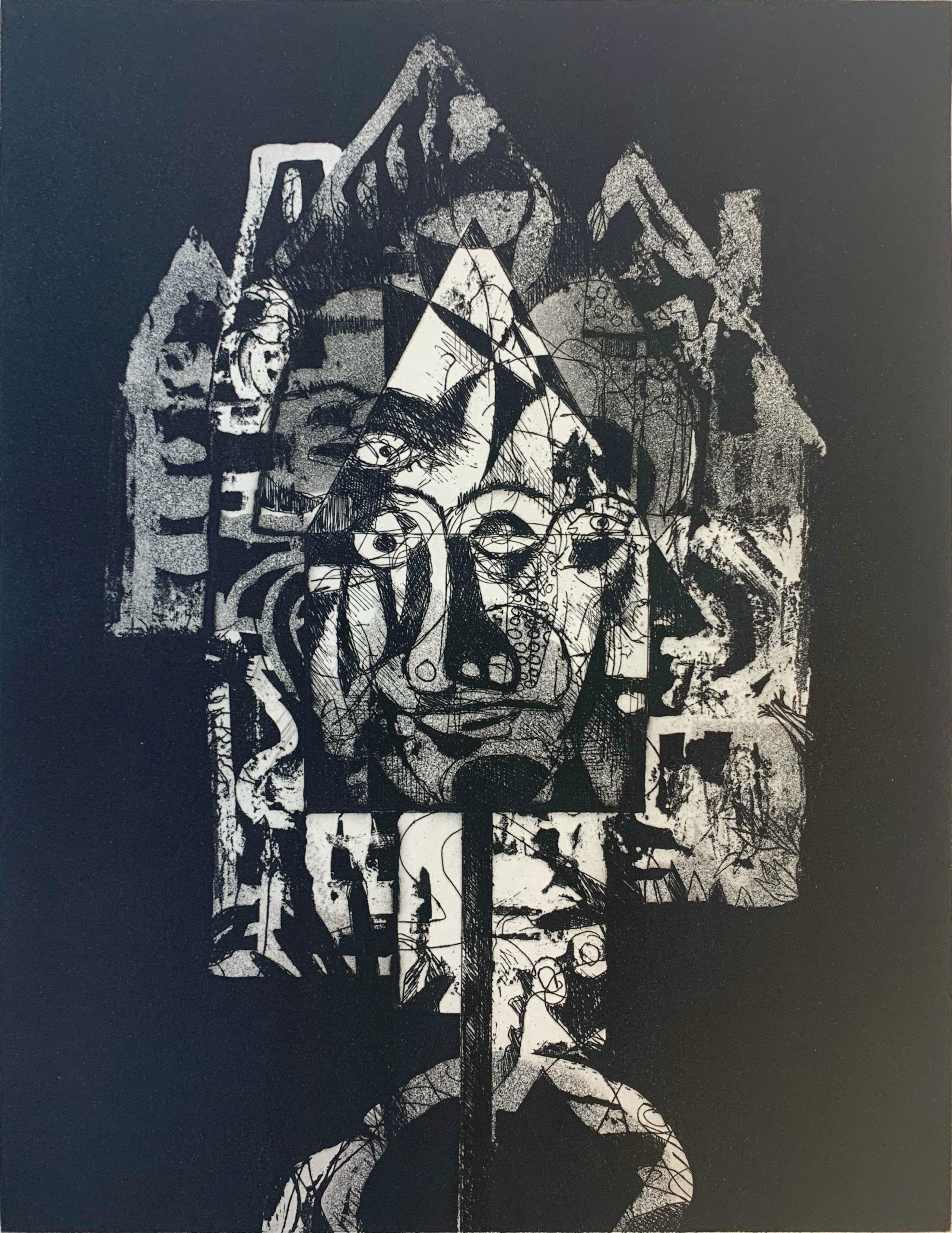 Intaglio print from an etching with aquatint, sugarlift, and spitbite.
