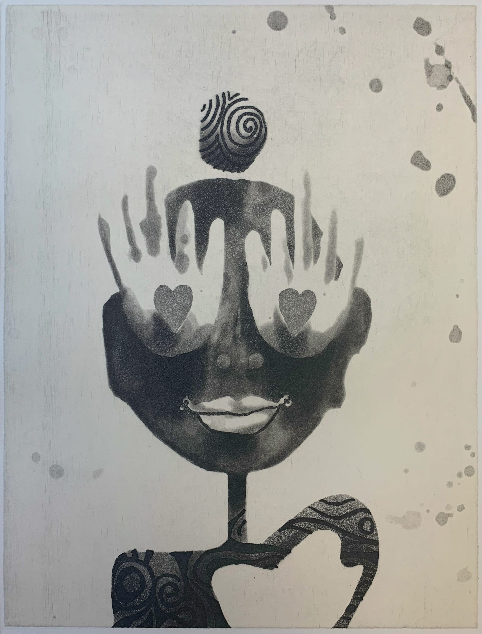 Intaglio print from an etching with aquatint, sugarlift, and spitbite.