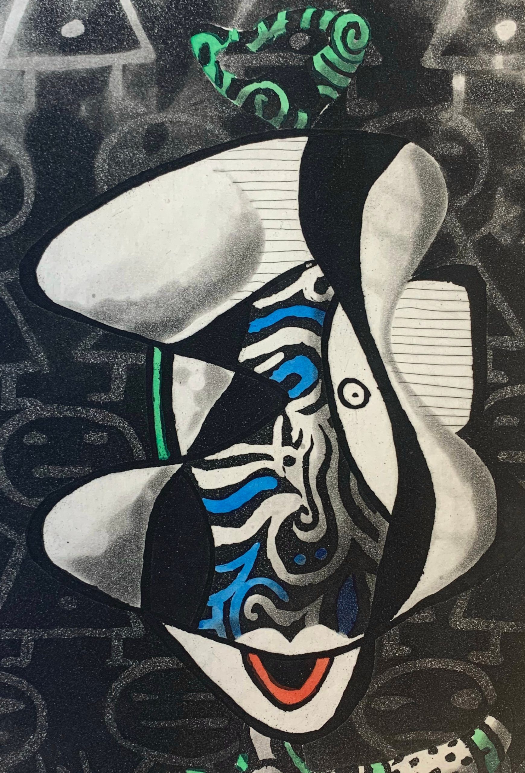 Intaglio print from an etching with aquatint, sugarlift, and spitbite.