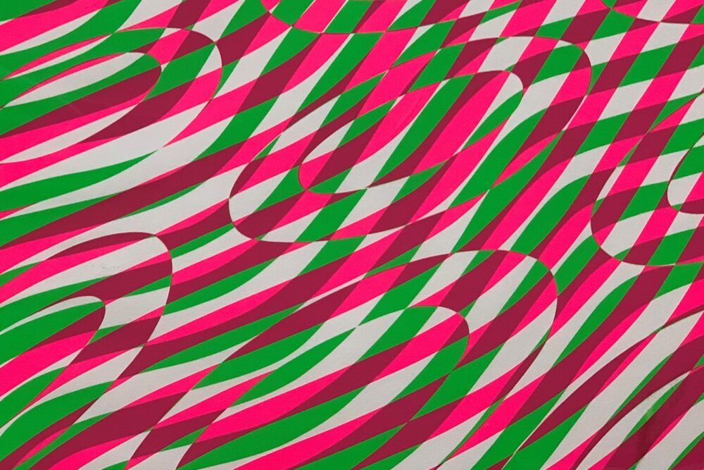 An exuberant set of circles heading out to the horizon, obscured by swirls of color.