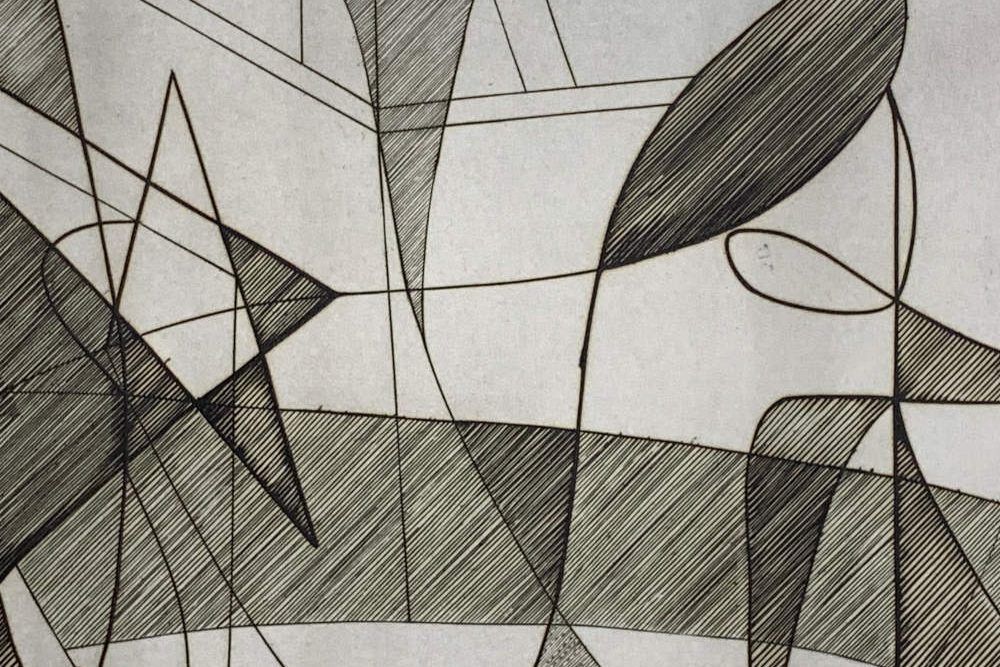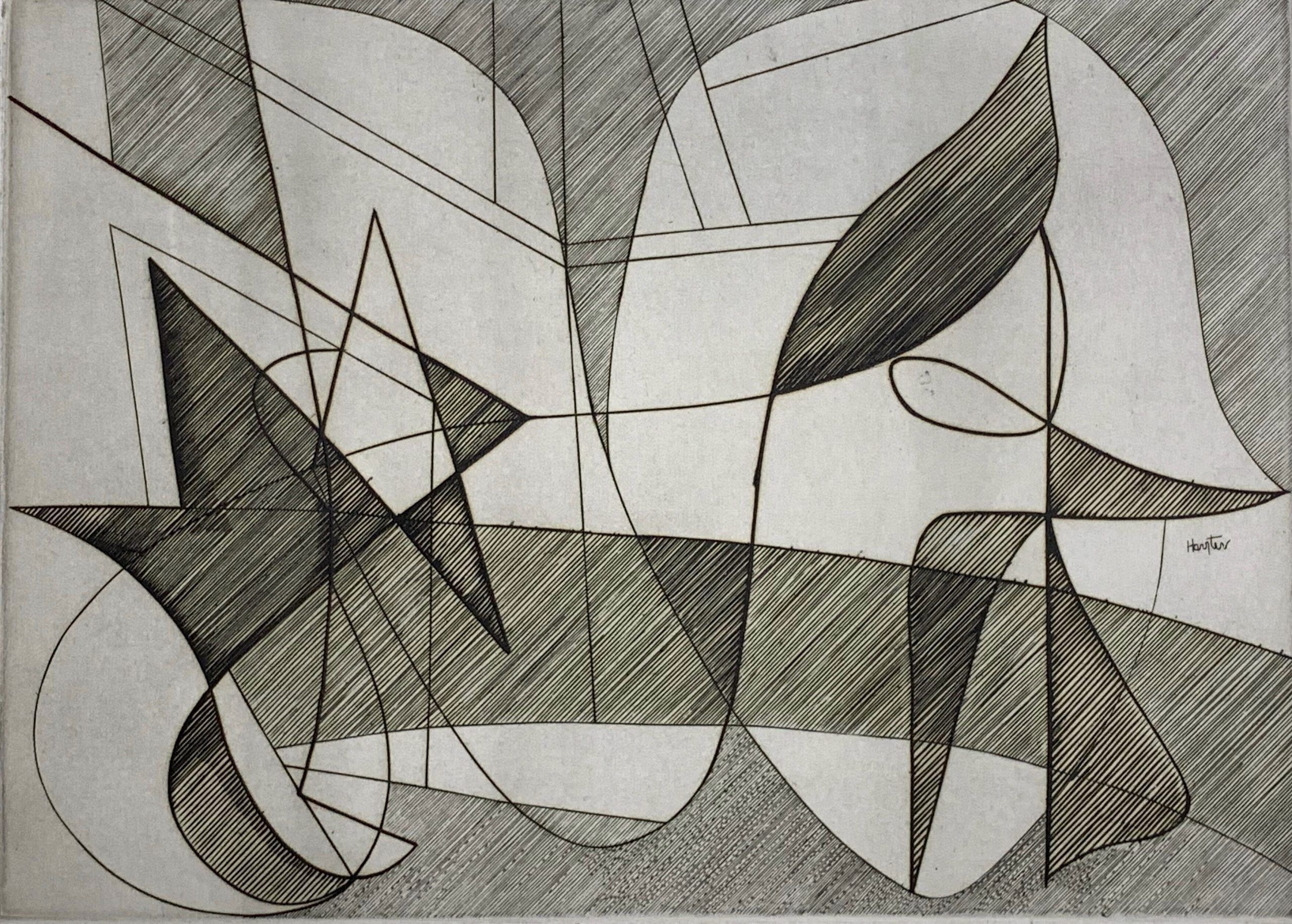 This work by Stanley William Hayter—undisputedly the most influential person in modern printmaking—is an Intaglio print made from an engraving on a copper plate.  It bears the alternative title Circus.
