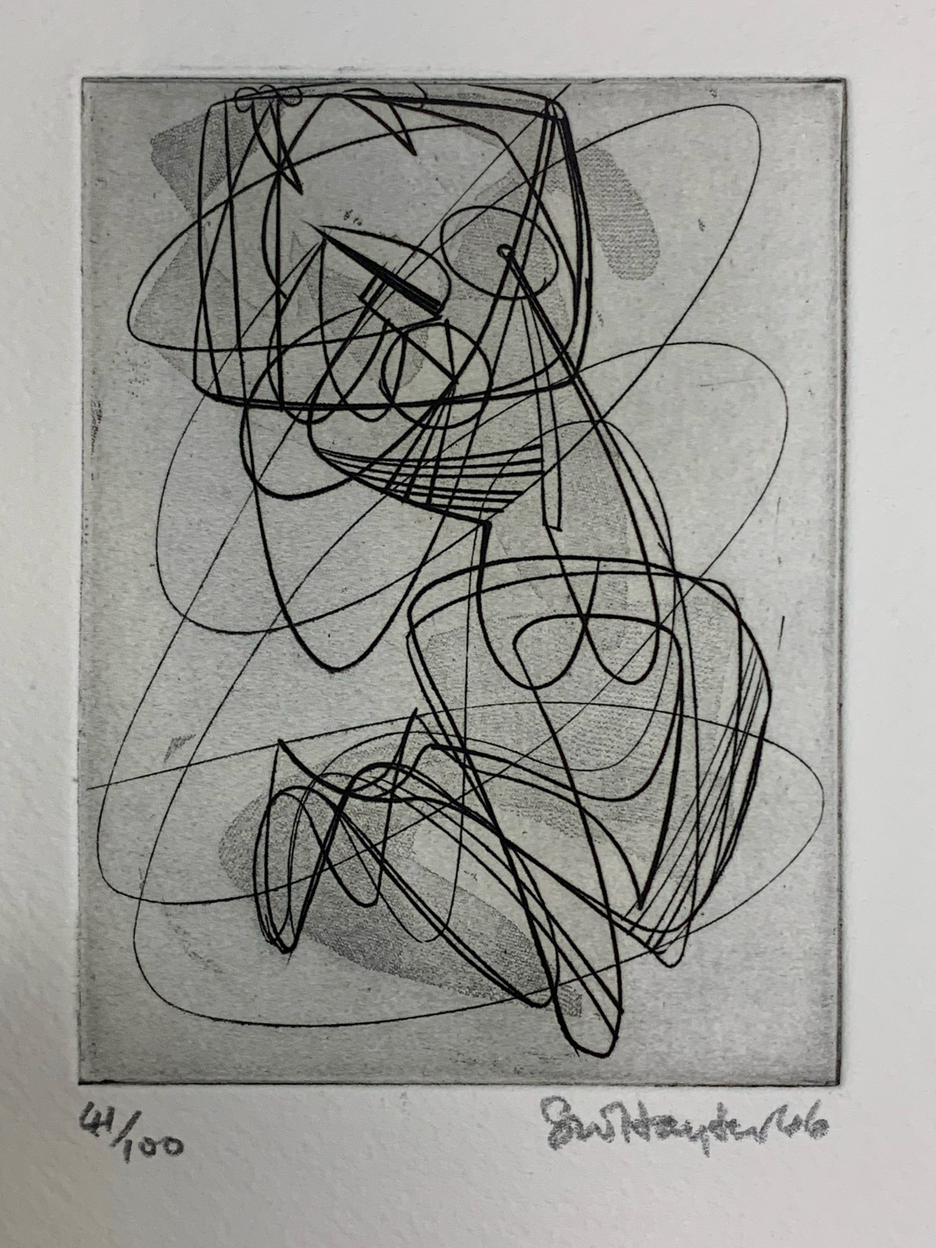 This work by Stanley William Hayter—undisputedly the most influential person in modern printmaking—is an Intaglio print made from engraving and soft-ground etching on a copper plate.
