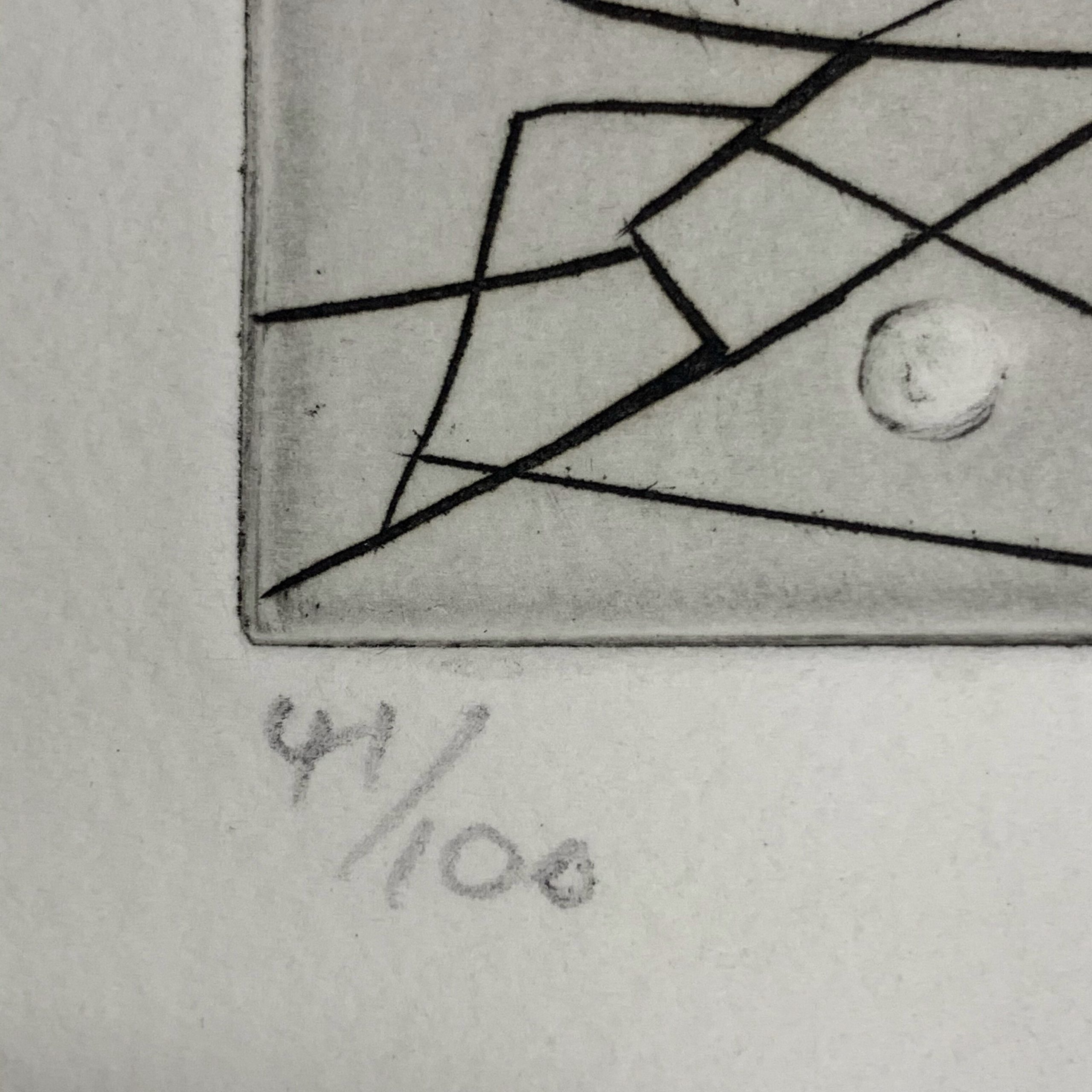 This work was previously printed in 1939 on Montval paper in an edition limited to 30 impressions aside from five artist’s proofs. Published by the London Bulletin. The plate was cancelled after the 1973 edition by engraving a signature which prints in reverse.