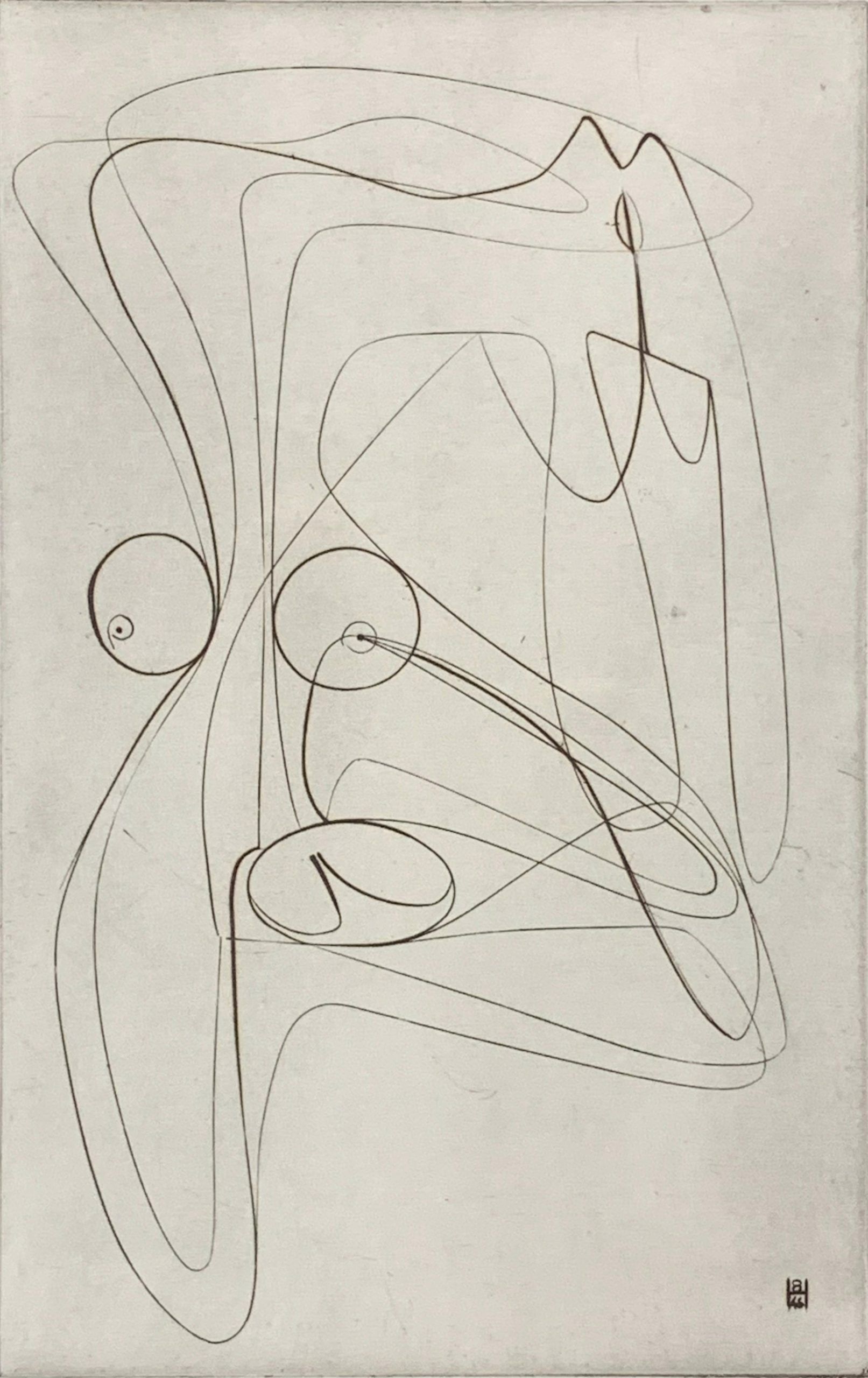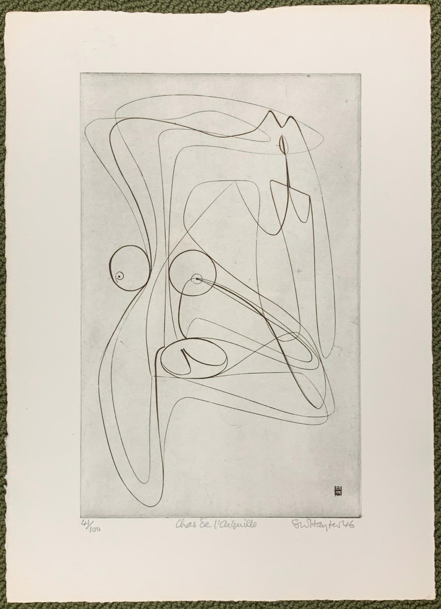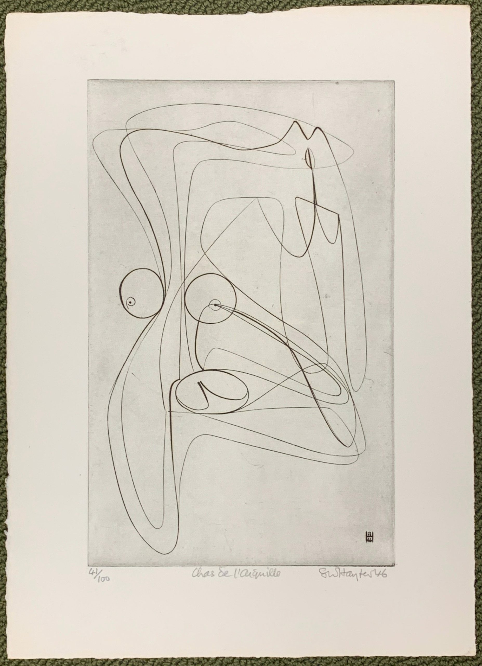 This work by Stanley William Hayter—undisputedly the most influential person in modern Western printmaking—is an Intaglio print made from engraving on a copper plate.