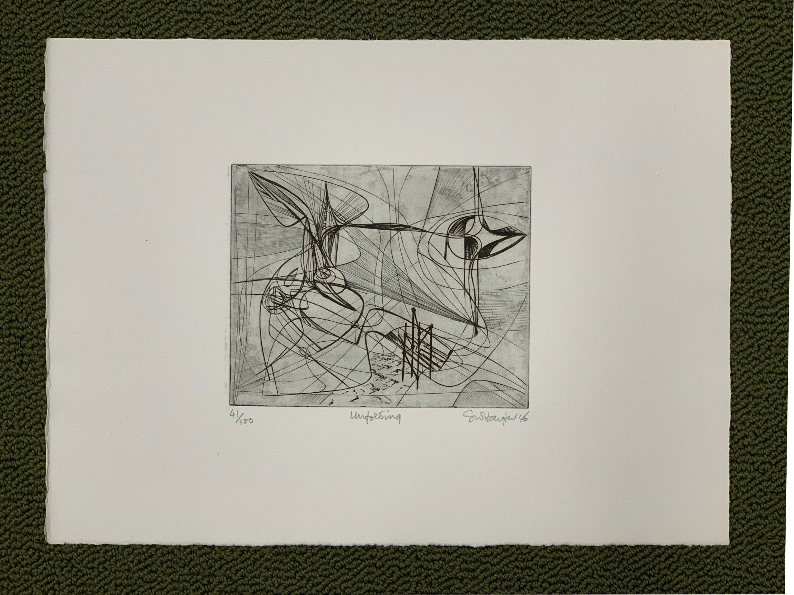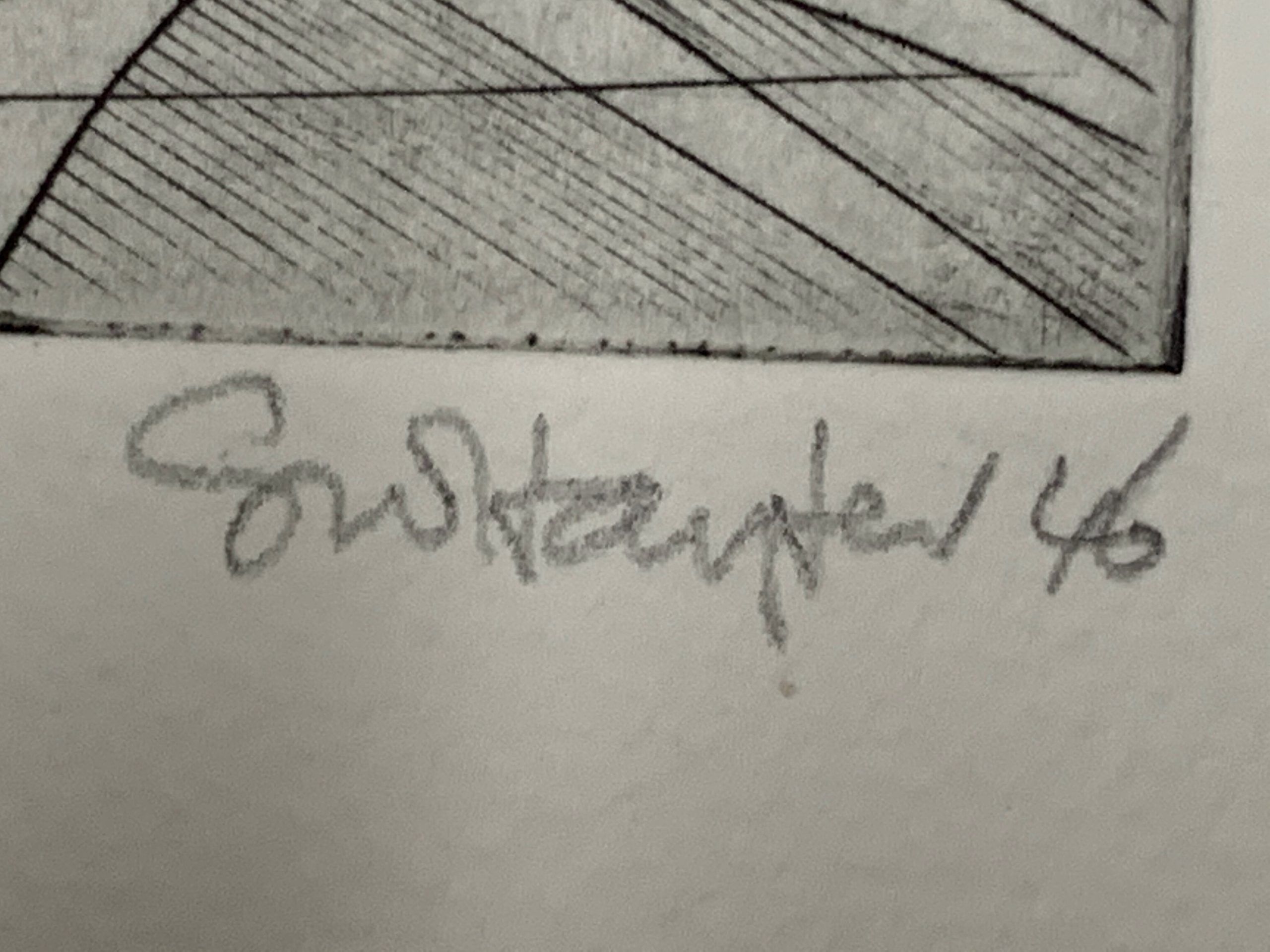 This engraving was previously printed in an edition limited to 30 on various papers. The edition was completed on March 1, 1973. The plate was cancelled after the 1973 edition by engraving a signature which prints in reverse.