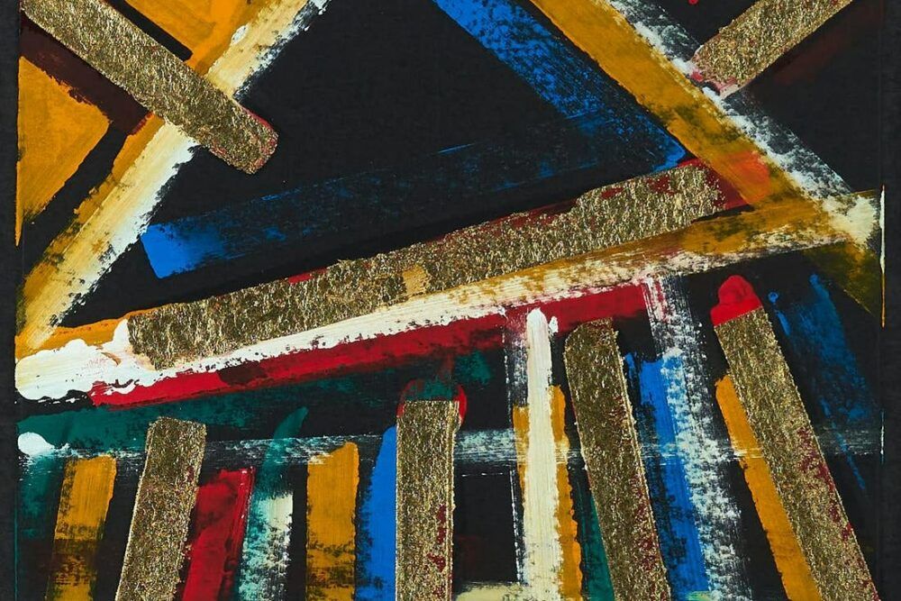 Pastel in numerous colors on black paper.