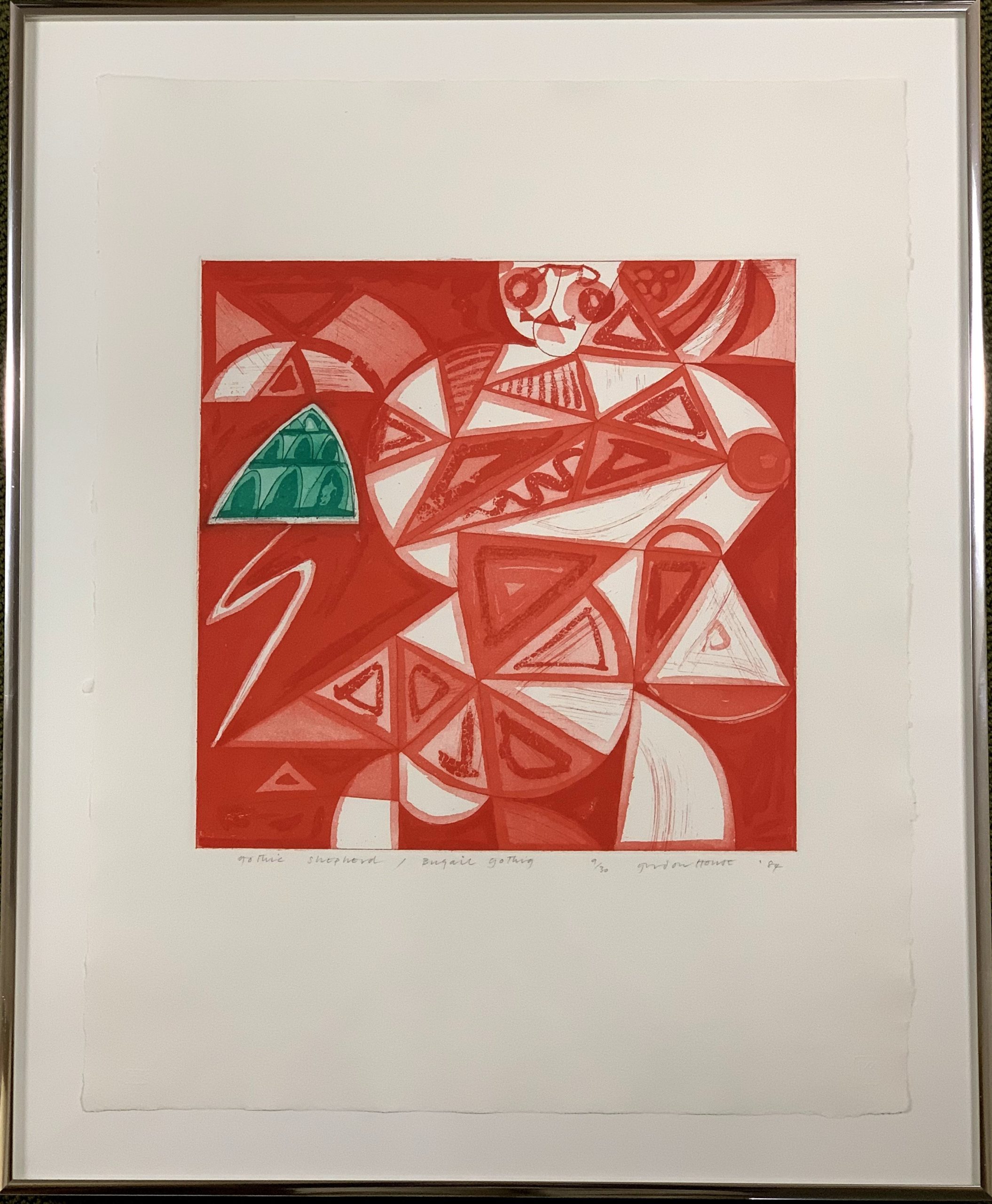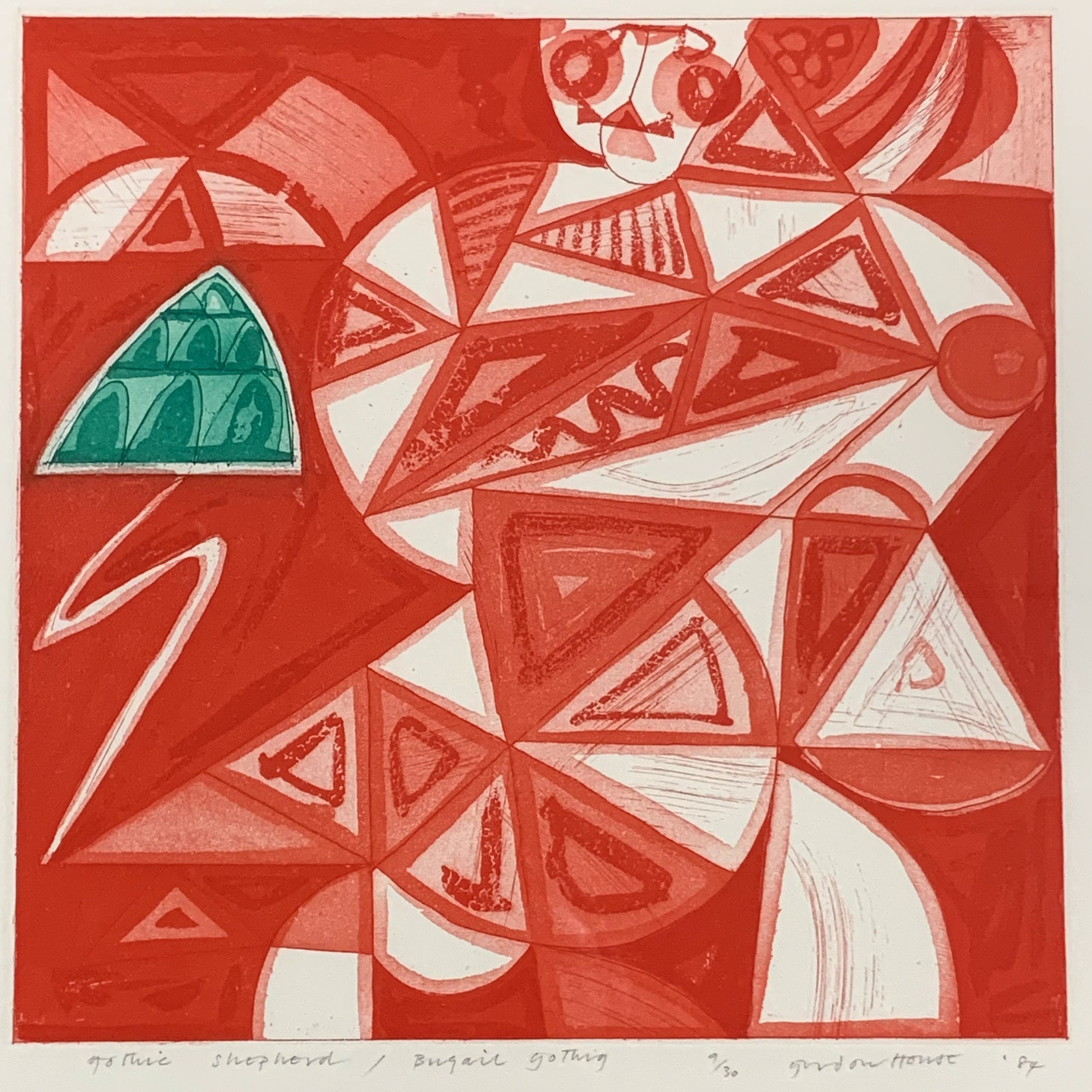 The Washington Color Gallery focuses on Washington Color School and related artists, along with works by great printmakers.  This work by the great printmaker Gordon House is a fine example of truly excellent print-making, though it depicts a world far from Washington, D.C. It weaves together compelling imagery, history, technical prowess, and imagination to create a work of beauty.