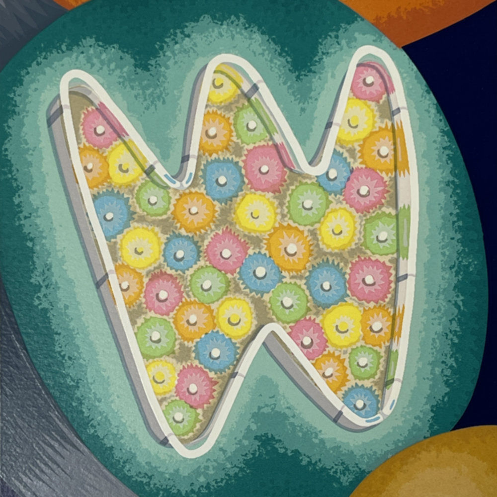 With the heavy inking, glossiness, and luminosity of the silkscreen technique pioneered by mid-Century New York artist Clayton Pond.