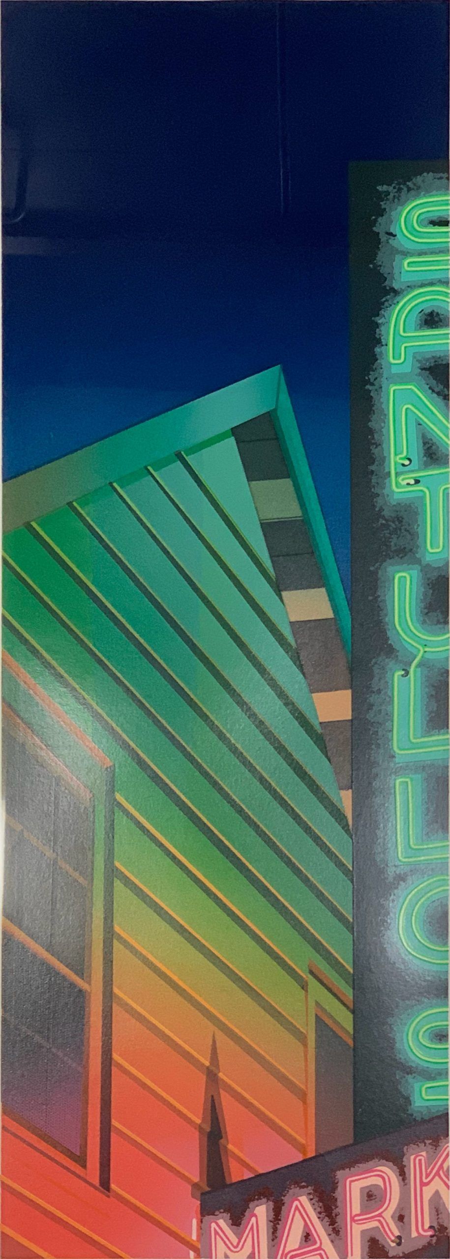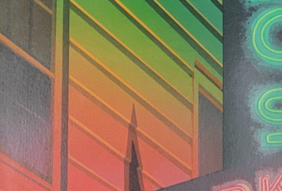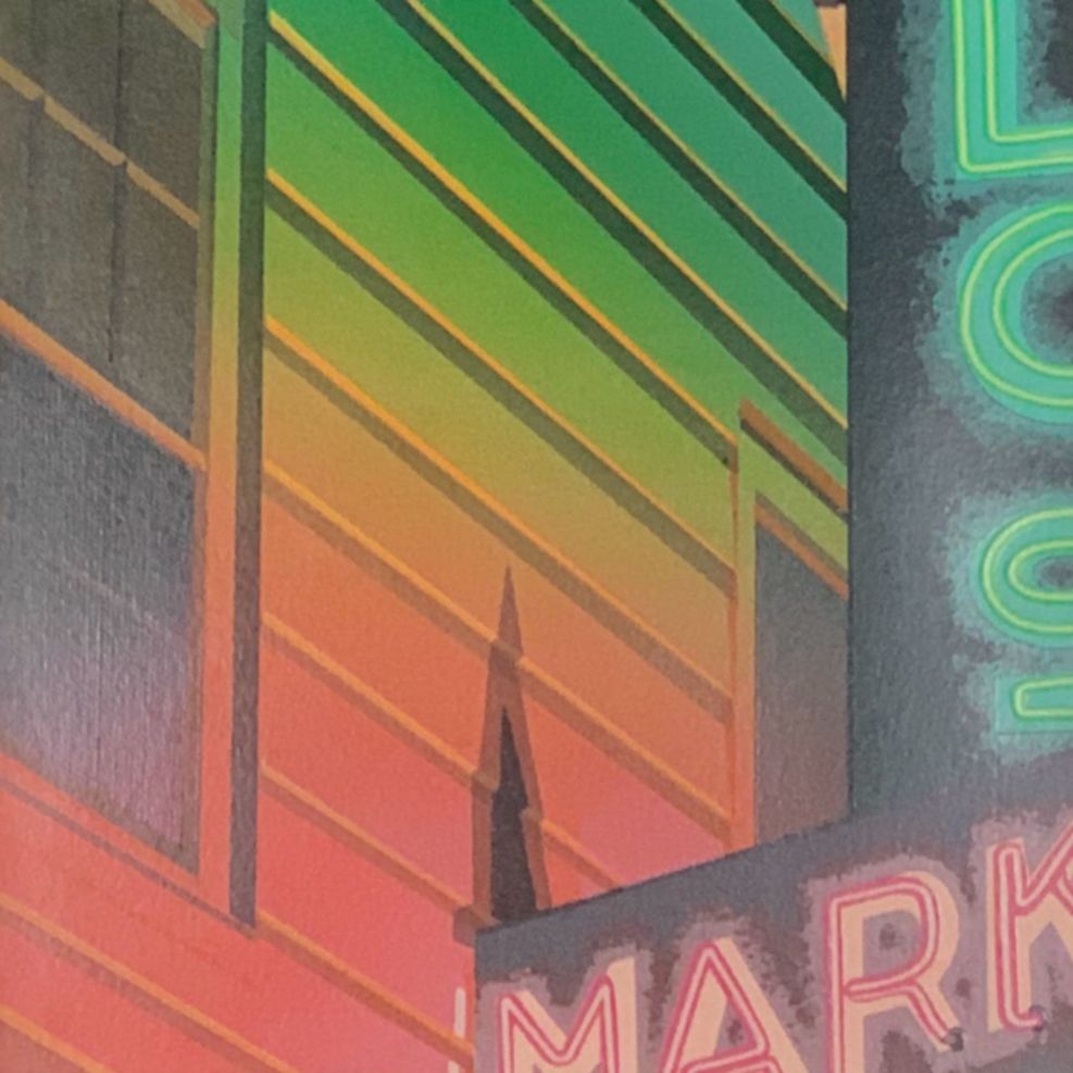 Huffman’s background as an architecture student is clear in this realist work, which seems to be a remembrance of a now-closed business.