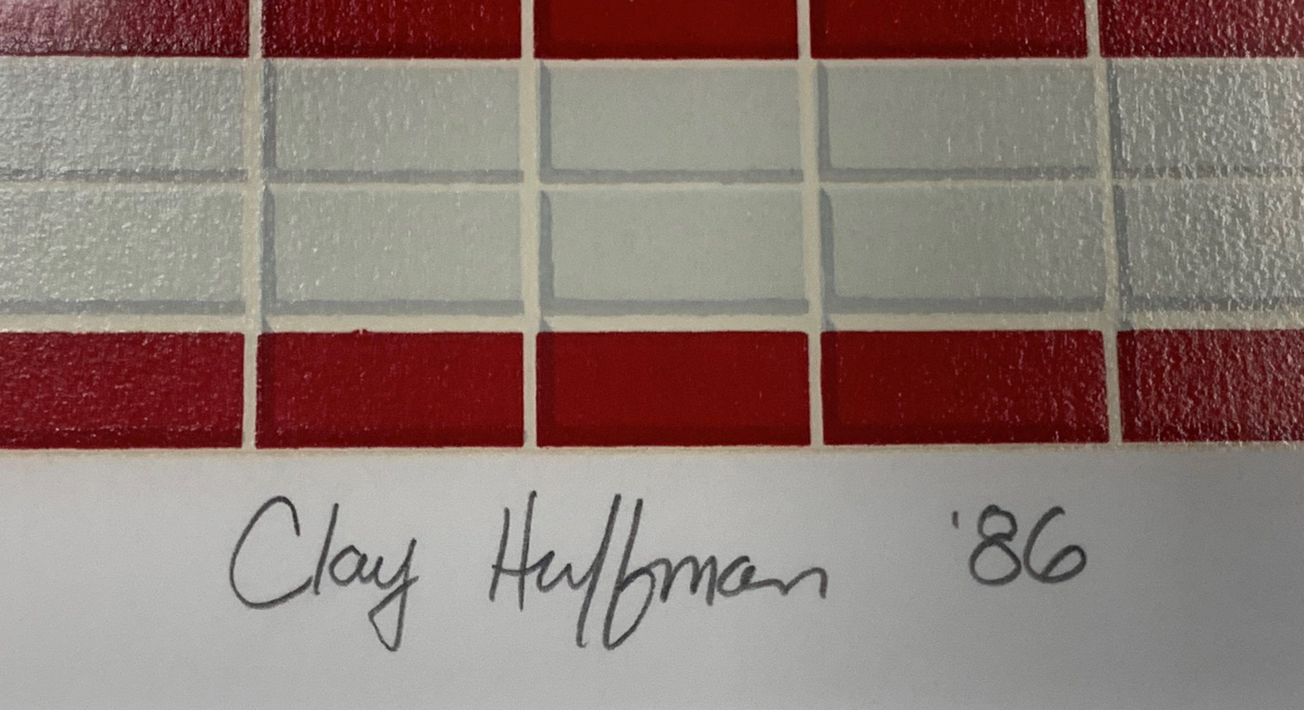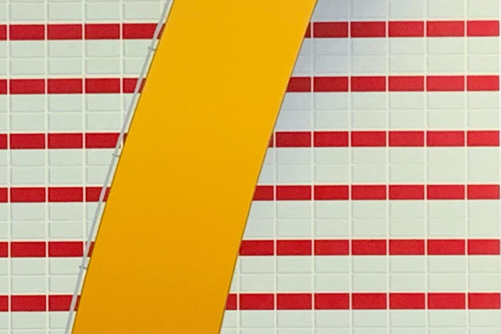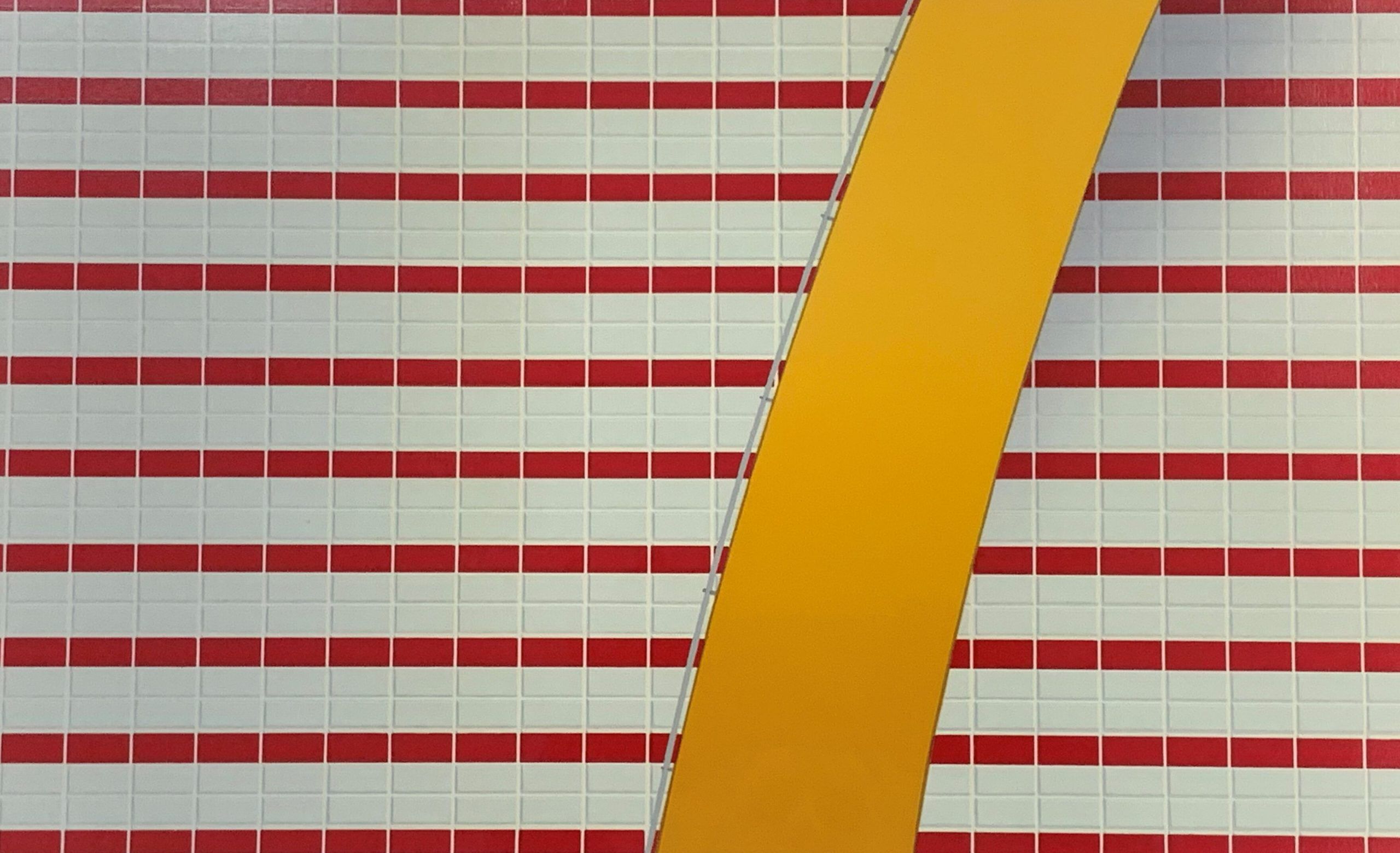 Clay Huffman’s background as an architecture student is clear in this work, which blends figurative with abstraction. Huffman nicknamed this work “Small McD,” and the work is commentary on McDonald’s as an emblem of Americanism.