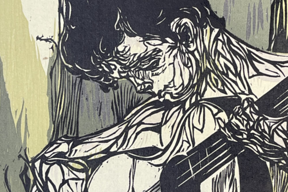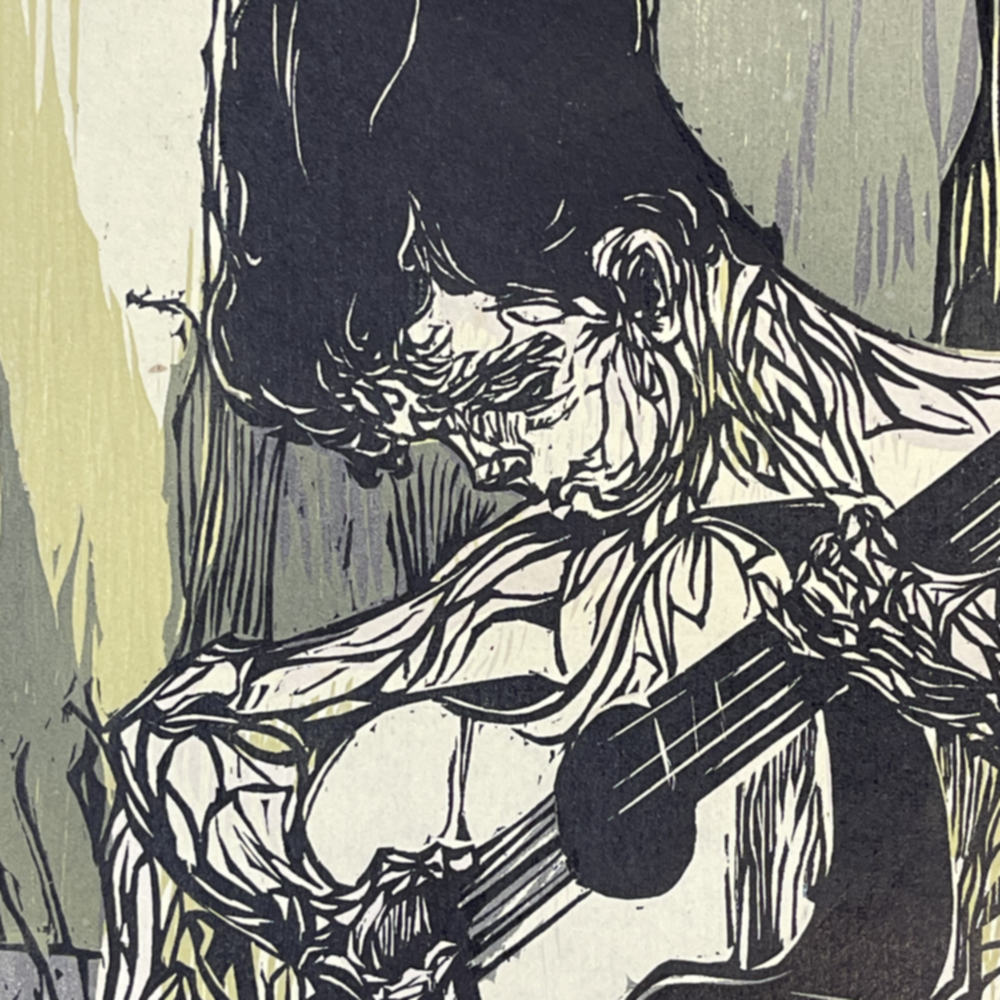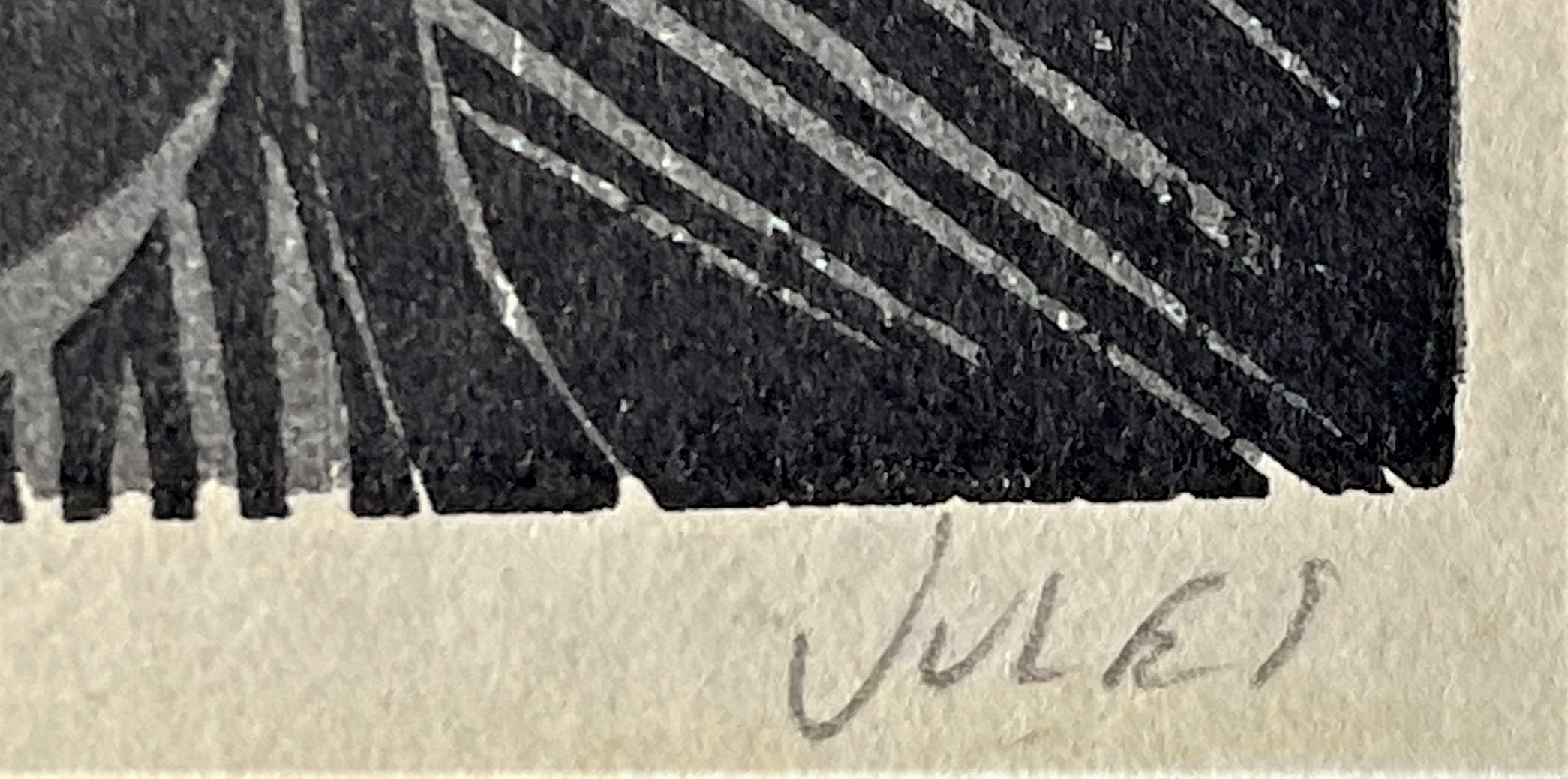 Mervin Jules produced a great many works showing musicians.  This work is a delightful study of the deep concentration of the young guitarist.