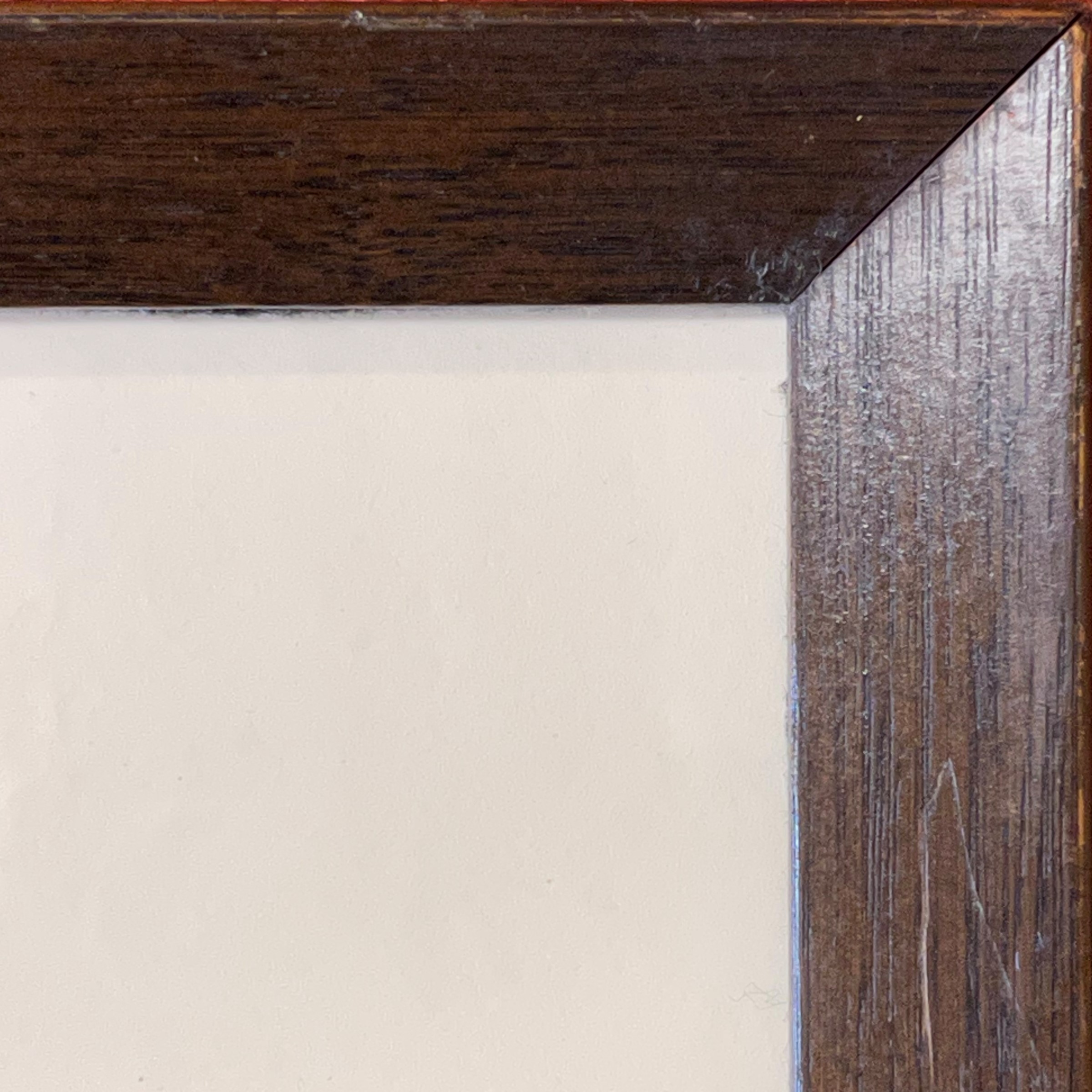 Professionally reframed in a vintage walnut frame behind 99% UV-filtering art glass strictly using all conservation-grade materials.