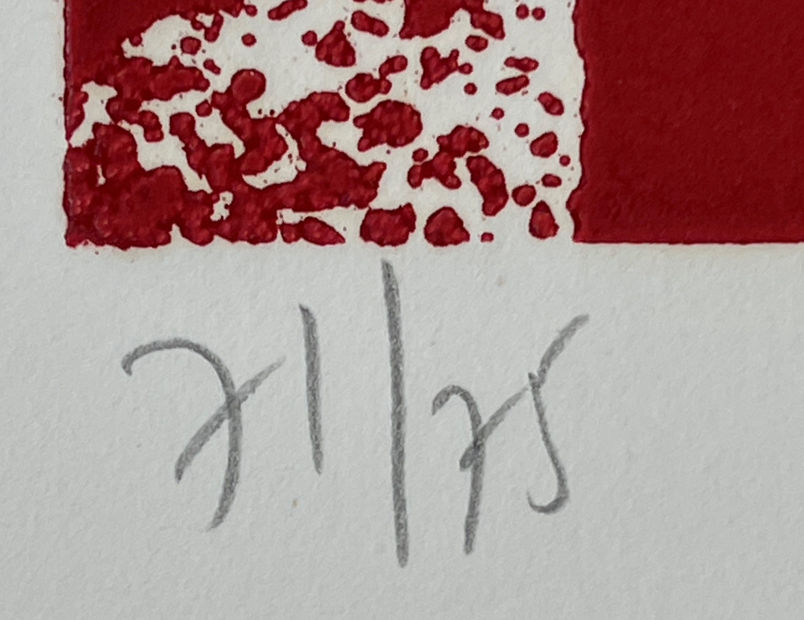 Hand-signed in pencil by the artist en recto lower right.  Editioned in pencil en recto lower left.