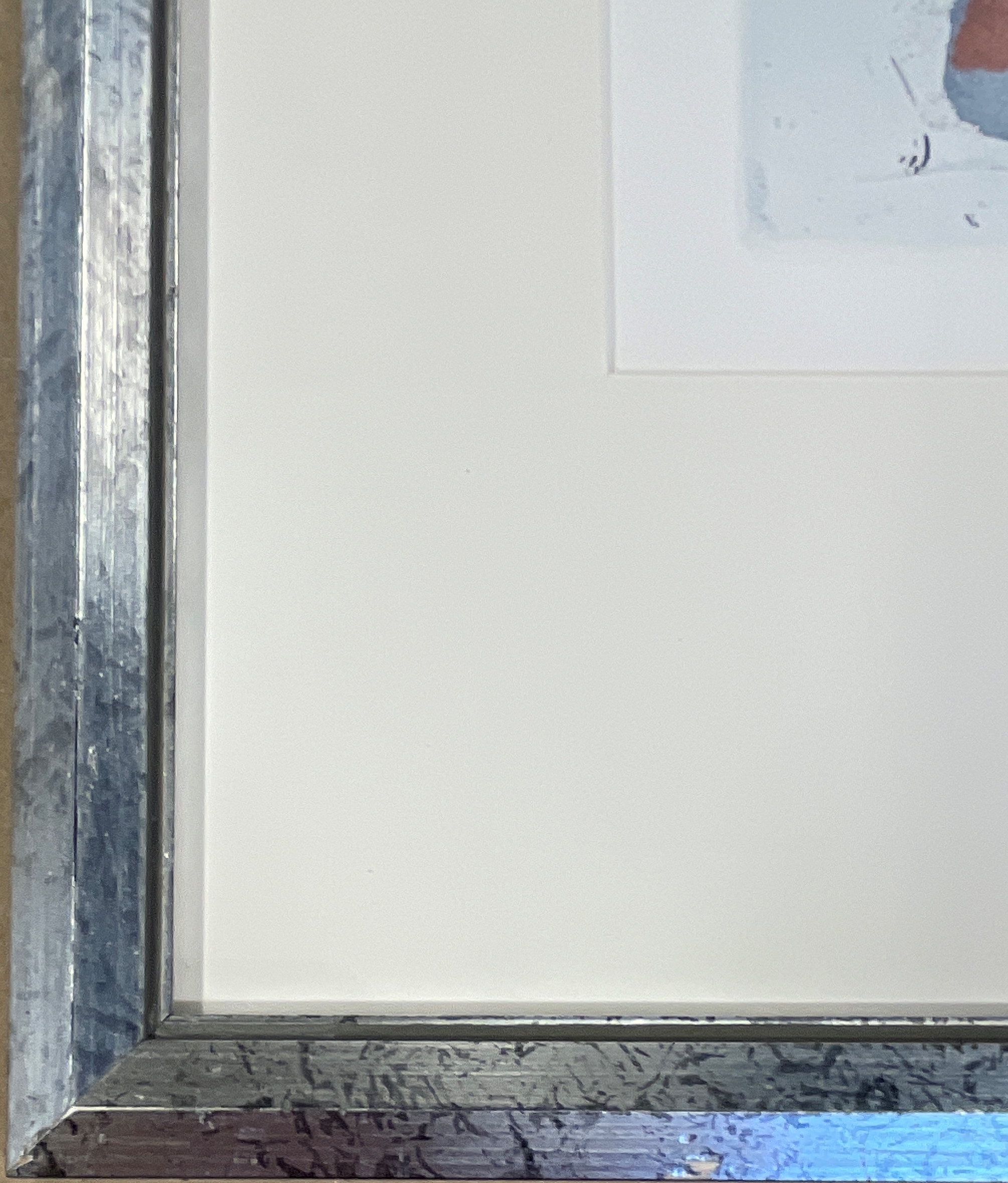 Custom matted and framed in a silvered wood frame behind 99% UV-blocking art glass using strictly conservation-grade materials.