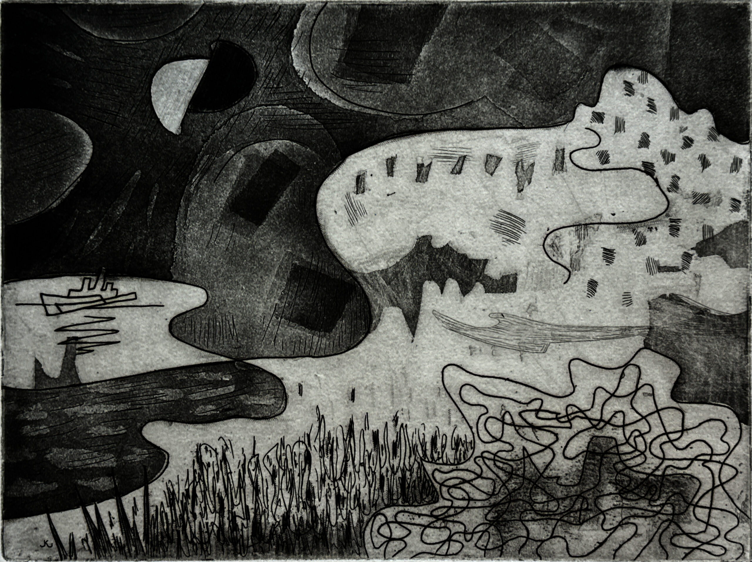 Etching, Aquatint, and Roulette in black ink on White Rough-Surfaced Wove Paper
