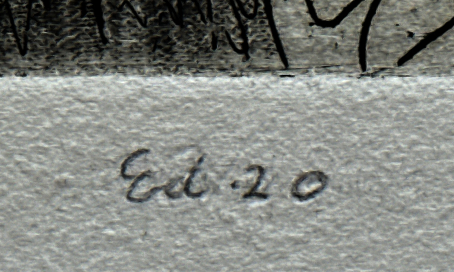 Hand-signed in pencil, en recto lower right, with date. Titled en recto lower left. Editioned en recto bottom center.