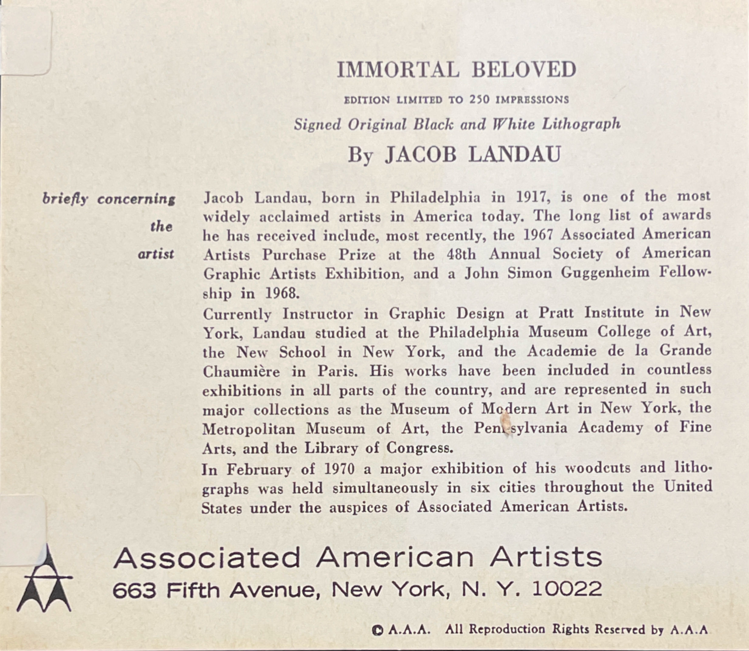 Catalogue Raisonné:  Jacob Landau: The Graphic Work, No. 119.