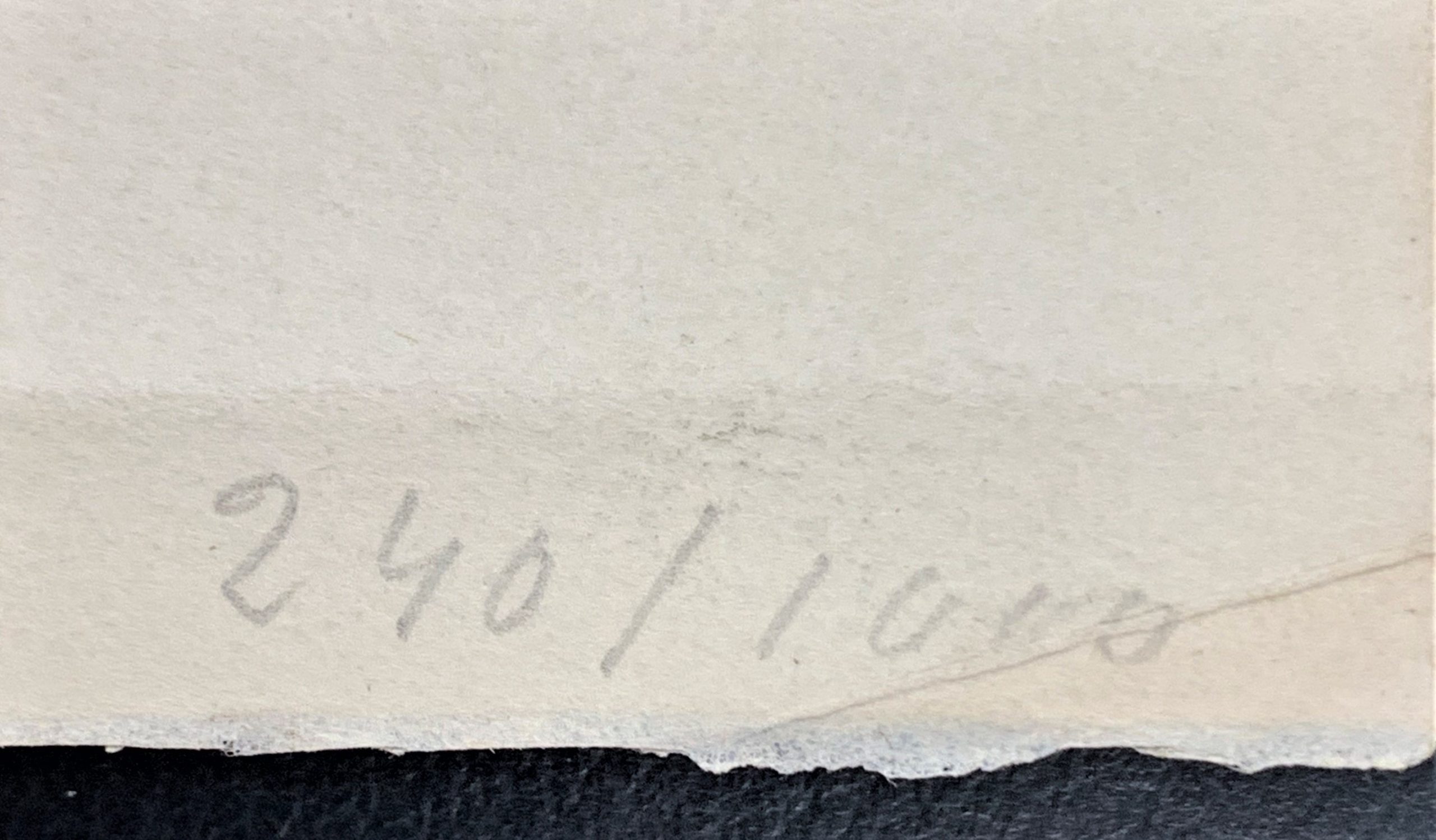 Signed in the plate en recto lower right.  Hand-numbered in pencil en recto lower right margin.  The monogram stamp of the printer is en recto in the lower left corner of the image.